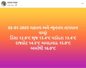 Temperature Expected To Increase Over Saurashtra, Gujarat & Kutch Till 3rd January 2025 – Subsequently Cold Spell on 5th/6th January 2025 – Update 30th December 2024