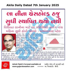ENSO ન્યુટ્રલ પરીથીતી ચાલુ રહી : સંભવિત પ્રથમ લા નીના થ્રેશોલ્ડ જાન્યુઆરી 2025 ના અંત સુધીમાં હાંસલ થાય તેવી શક્યતા