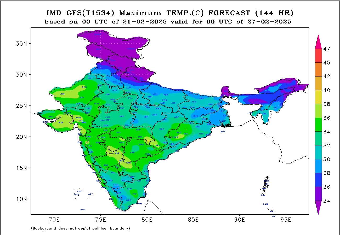 Maximum Temperature Expected To Remain Above-Normal Over Saurashtra, Gujarat & Kutch Up To End Of February – Rising To Between 35°C-38°C During 25th-27th February 2025