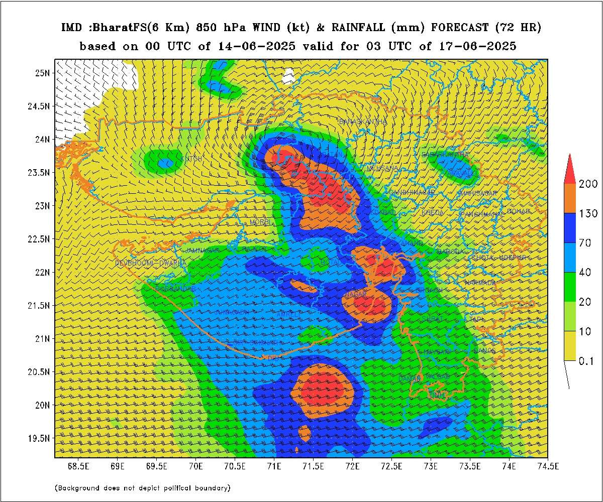 BFS 850 hPa – Precipitation Gujarat & Nearby