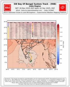 ECMWF 26-11-2025 00UTC Run Forecast Track Of Well Marked Low Pressure Over Southwest Bay Of Bengal