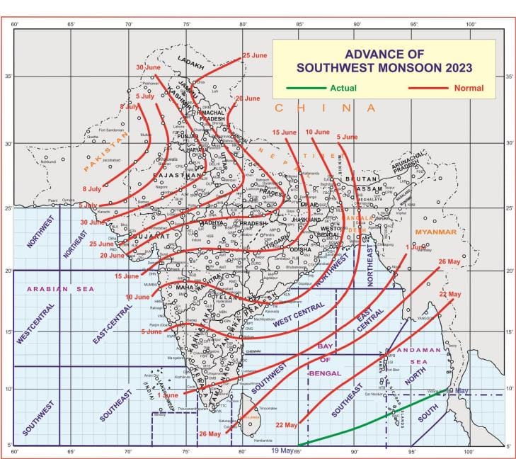 Advance of southwest monsoon 2023 Map.