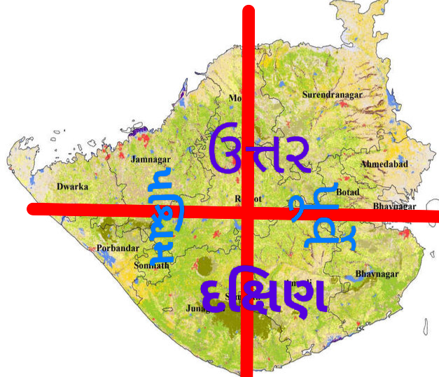 દિશા બતાવતો સૌરાષ્ટ્ર નો નક્શો