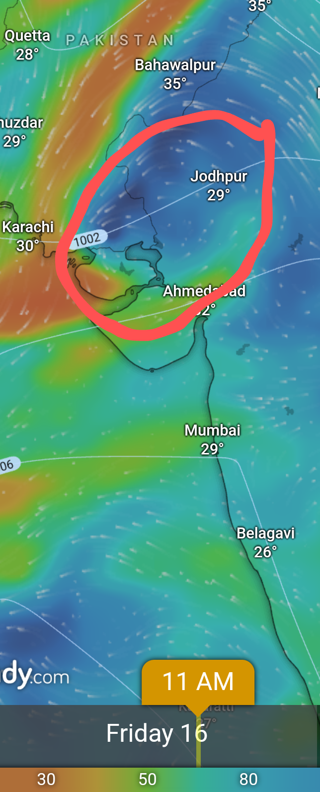 GFS windy માં આ રીતે બહોળું સર્કુલેશન બતાવે છે 700 hpa thi 500 hpa સુધી..સવાર ના 6 થી 10 સુધી દ્વારકા માં વરસાદ નોંધાયેલ છે.. ત્યાં પવન ઘૂમરી મારી રહ્યો છે ..મુખ્ય ભેજ રાજસ્થાન બાજુ જઈ રહ્યો પણ થોડું થોડું અહી પણ વરસે…sir અભ્યાસ બરોબર છે..કે નહિ