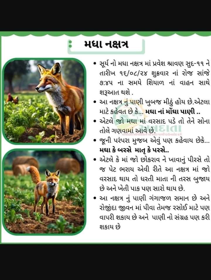 નોર્થ ગુજરાત અને લાગુ દક્ષિણ રાજસ્થાન પર એક યુએસી છે અને બીજું યુએસી રાજસ્થાન પર શક્રિય હોય, રાજસ્થાન માં ભારે વરસાદ બેક દિવસ રહેશે અને ત્યાર બાદ પાકિસ્તાન બાજુ વરસાદ રહેશે. તેની અસર રૂપે નોર્થ ગુજરાત, લાગુ કચ્છ અને સૌરાષ્ટ્ર માં છૂટી છવાઈ સામાન્ય વરસાદી ગતિવિધિ રહેવાની શક્યતા. ત્યાર બાદ સૌરાષ્ટ્ર અને કચ્છ માં વરસાદી ગતિવિધિ મંદ રહેશે. ગુજરાત રિજિયન બાજુ અમુક દિવસ છુટા છવાયા ઝાપટા હળવો/મધ્યમ વરસાદ અને આઇસોલેટેડ વિસ્તાર માં સાધારણ ભારે વરસાદ ની શક્યતા છે. સૌરાષ્ટ્ર, ગુજરાત અને કચ્છ માં જિલ્લા પ્રમાણે ની શરેરાશ વરસાદ 7 mm થી 35 mm કૂલ ની શક્યતા છે. બેક દિવસ પવન વધુ રહેશે અને આગાહી ના છેલ્લા બેક દિવસ પવન નું ફરી જોર રહેશે.