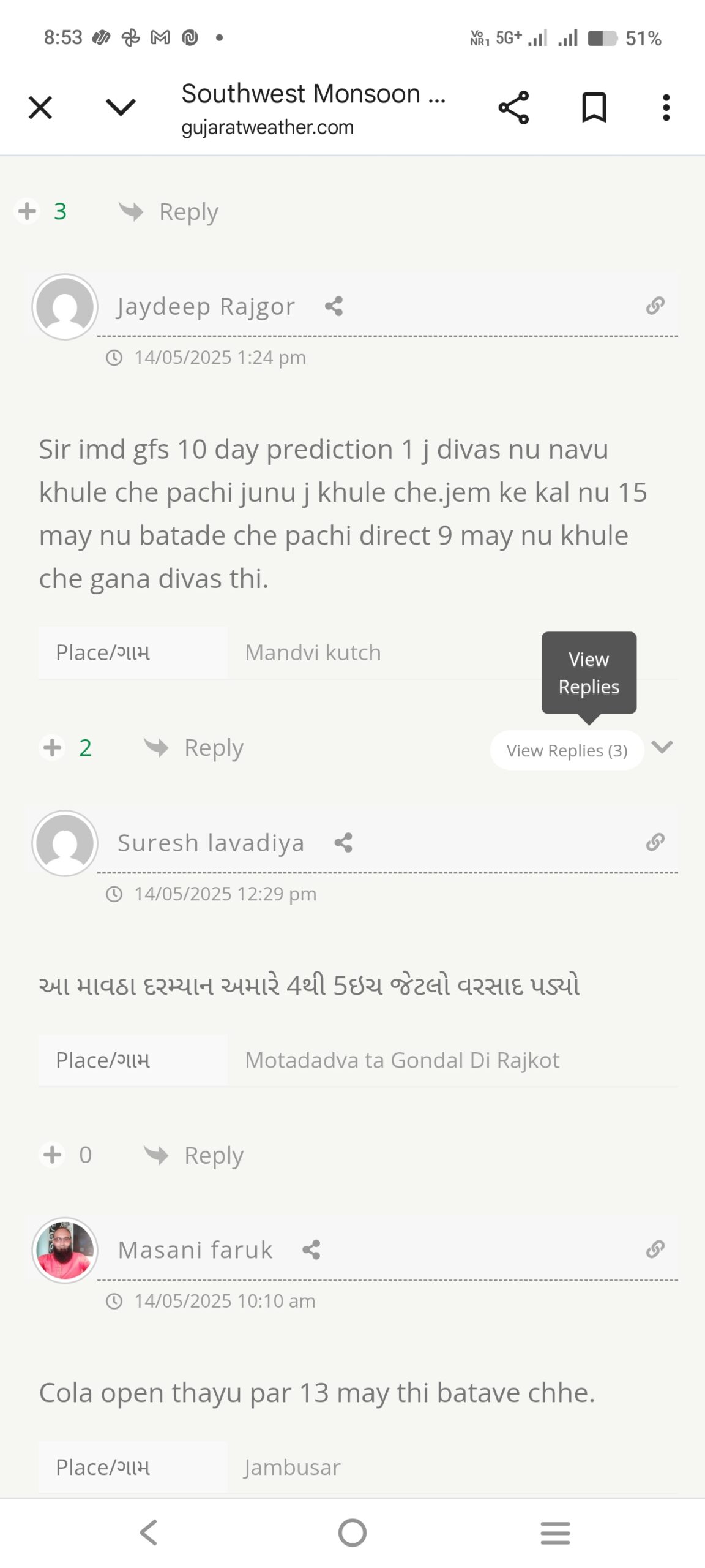અરે વાલા તમે 13 મે ના રોજ ગુજરાત માં 10થી 12 મે માં ચોમાસુ બેસવાની વાત કરો છોવ… તમે ખુબ જ અનુભવી સોવ મને ખબર શે પણ.. Just typing mistake.. Nothing else.. સર સુધારો કરી નાખશે