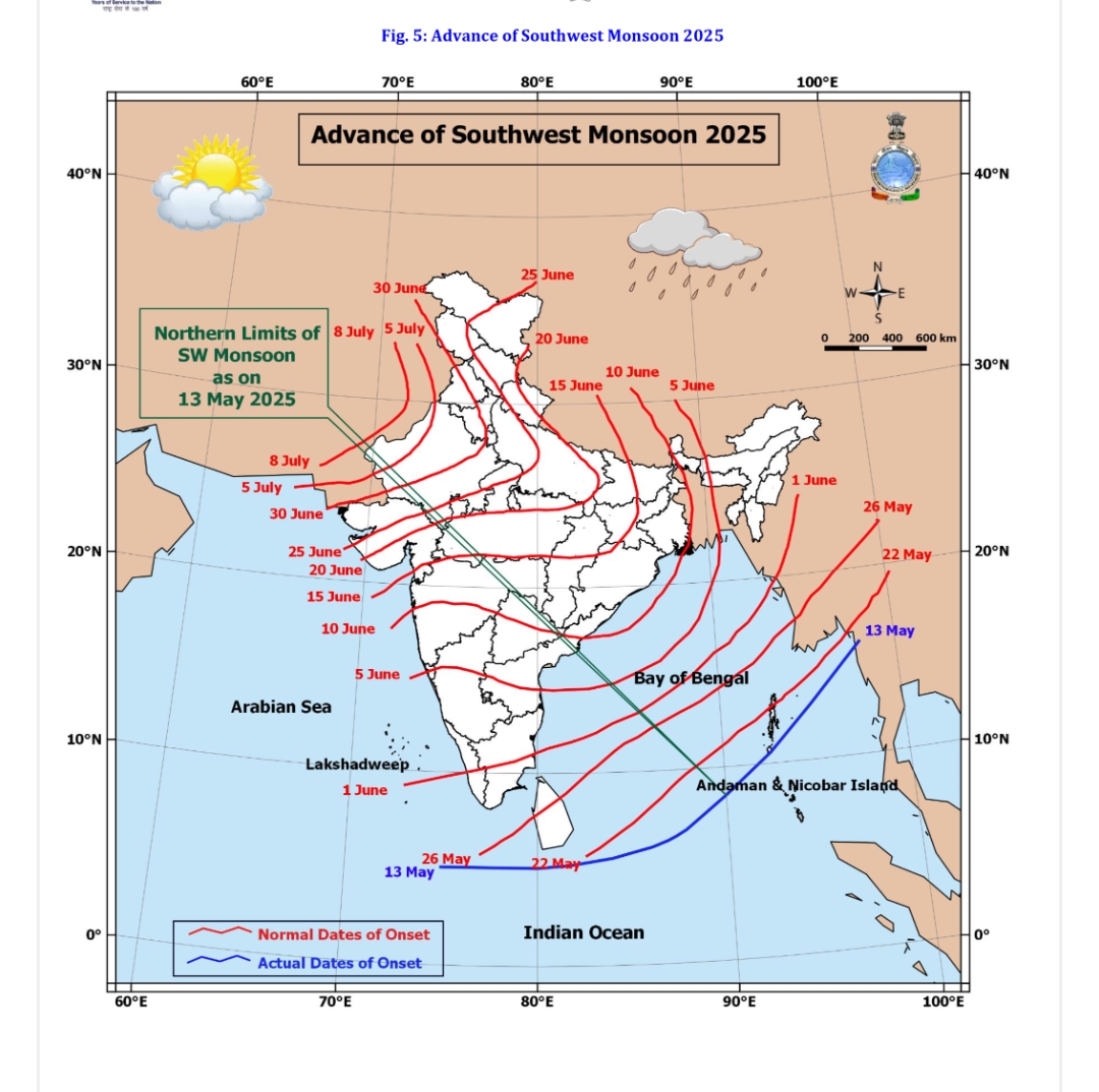 દક્ષિણ પશ્ચિમ ચોમાસુ 13 મે આસપાસ અંદામાન સમુદ્ર અને નિકોબાર દ્વીપોમાં પ્રવેશ કરશે; ગુજરાતમાં કમોસમી વરસાદનો અંત, તાપમાન નોર્મલ થવા તરફ આગળ વધશે (13–19 મે 2025)