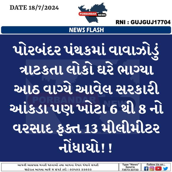 Sir 10 Vaga sudhi ma 7 inch Padyo Porbandar ma Haju 2 inch ocho btave che pan sir Tmari vaat sachi hti data moda moklya hase.