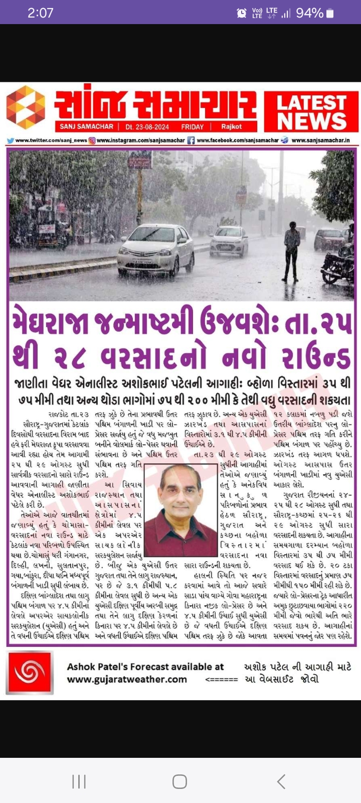 Dhrangadhra taluka ma aavta 24 kalak ma varsad ni keve sakyata che sir