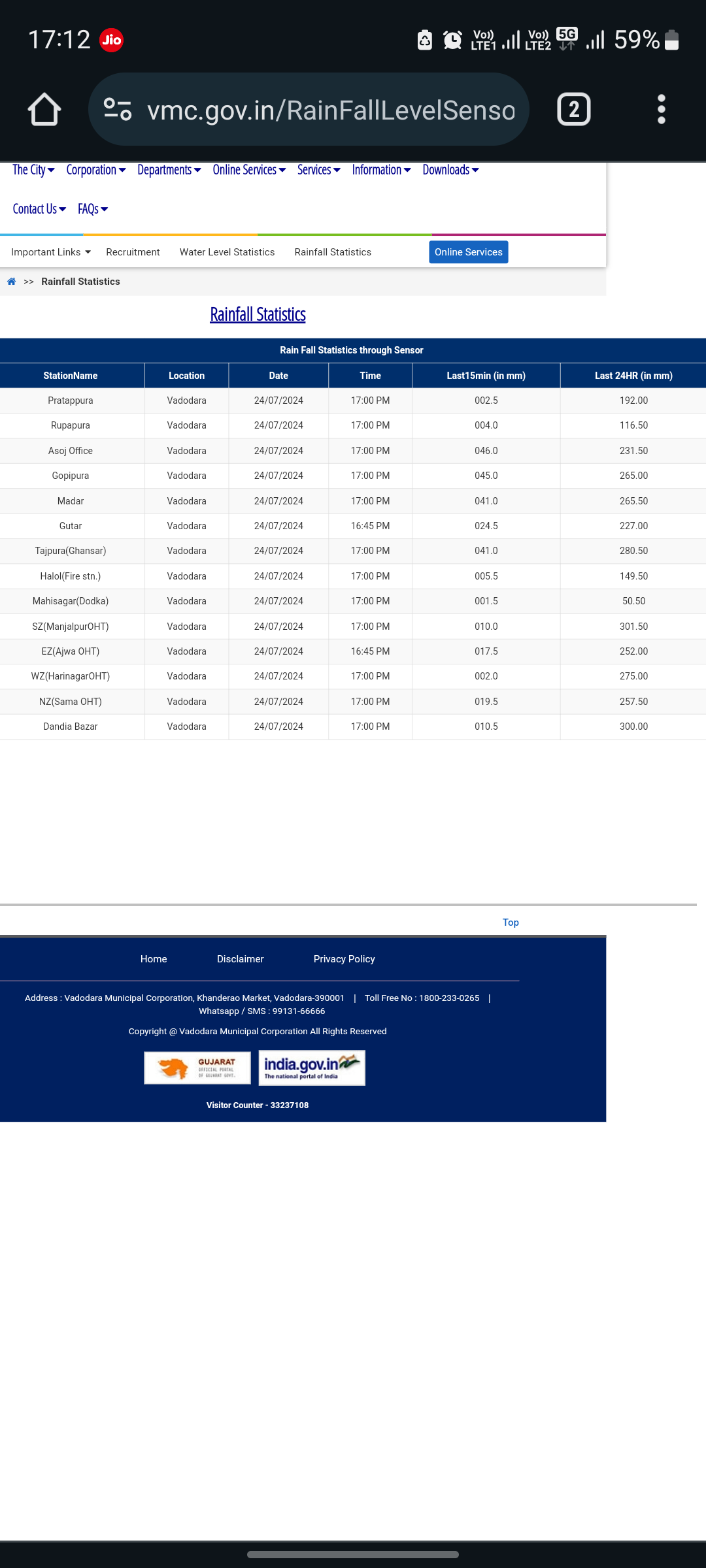 Sir ધોધમાર વરસાદ ચાલુ થયેલ છે 5 મિનિટ થી અમારે