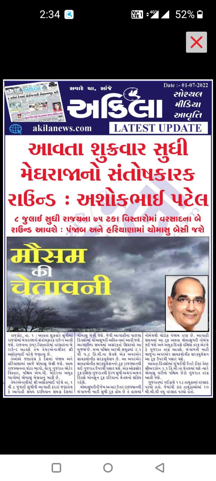 Akila ma navi apdet avi ama 75%gujart na vistar lakhiya chhe ana saro varsad