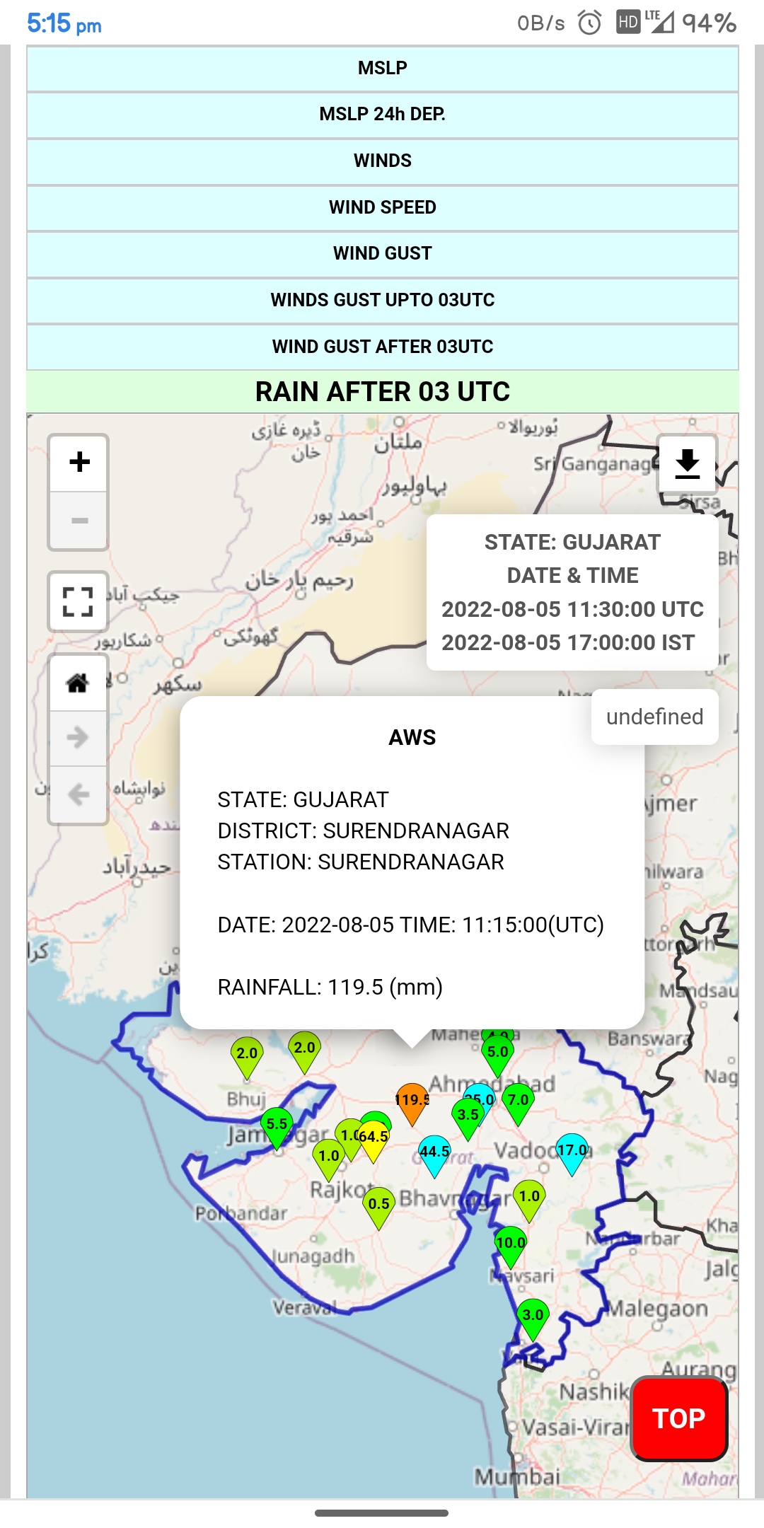 ” Very heavy rain is very likey to occur at isolated places over morbi, botad, Rajkot, surendranagar, Valsad, Dadra and nagar haveli and daman in next 24 hours ” such message received from NDMAEW