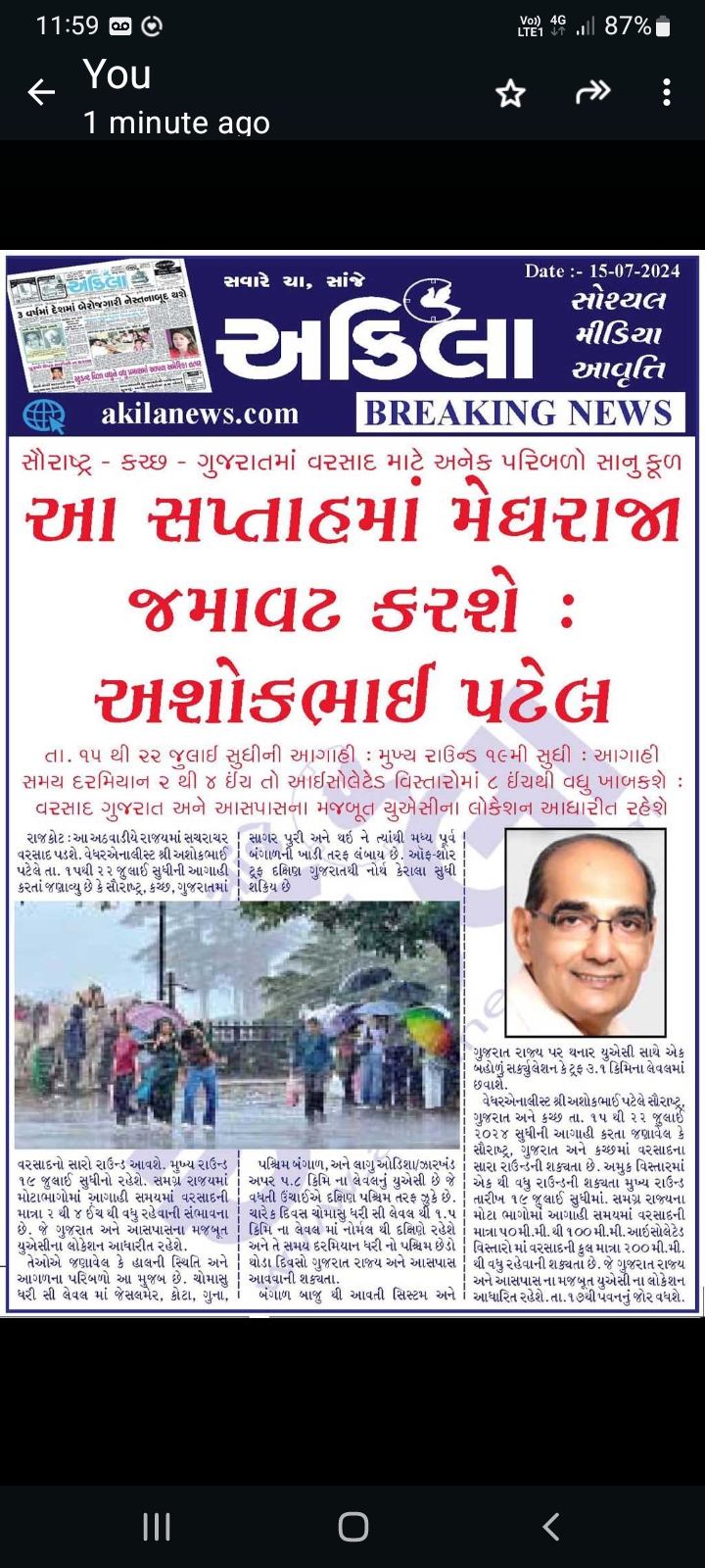 બધાય ને ભરપૂર વરસાદ મળશે એવી આશા રાખીએ…ખૂબ ખૂબ આભાર અશોક સાહેબ