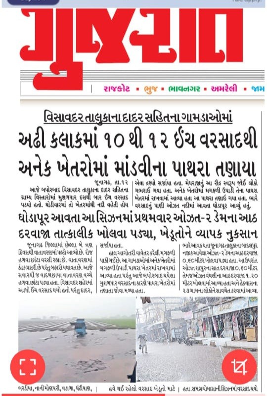 કાલે વરસાદના છાંટા નોતા… ધોરિયા વરસતા હતા..આવો વરસાદ ક્યારેય નથી જોયો..અંદાજિત 10 ઇંચ તો હસે જ