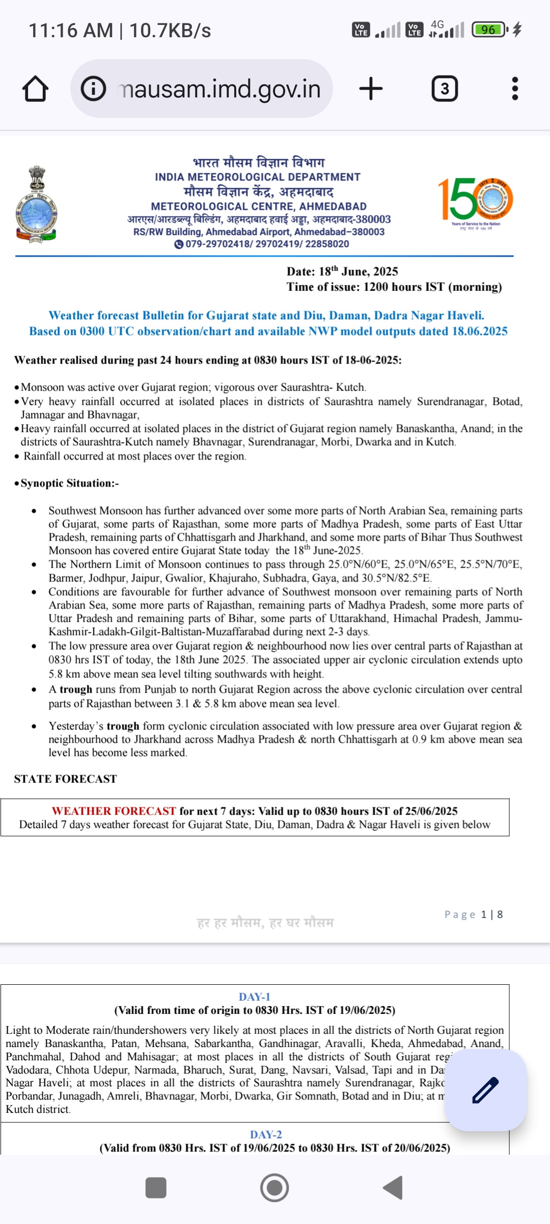 સાવચેતી: સ્ટોર્મ કે હવામાન અંગે ની માહિતી માટે ભારતીય હવામાન ખાતા/ગવર્મેન્ટ ના બુલેટીન/સુચના પર નિર્ભર રહેવું.