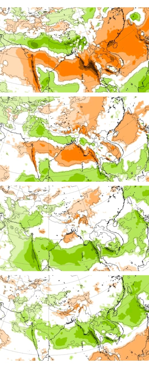 ECMWF model 4-week forecast mujab August na pela 2-week sudhi (19 August) below normal varsad raheshe, jyare August end thi September start ma saro varsad aavi shake chhe.
