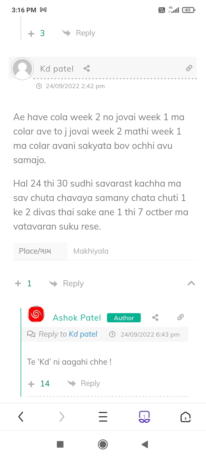 સર કોલા કાયમ નોખો અંદાજ આપે છે એટલે સુ કરવું એ સમજાતું નથી. અત્યારે તો gfs મોડેલે ગોટાળે ચડવ્યા છે મગફળી પાડવા નો ટાઇમ થાય ગયો છે એટલે ભગવાન નું નામ લયને રાપ મૂકી દેવી છે.