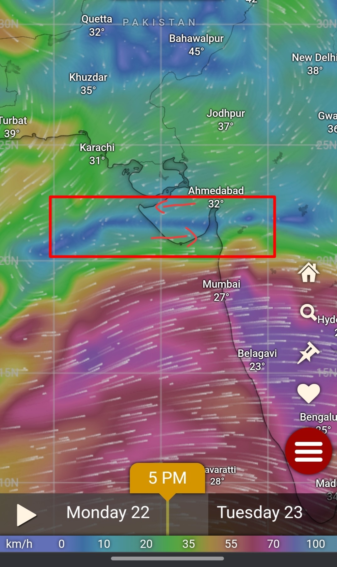 Aabhar ramji bhai. Aaje windy ma 95% humidity + vividh pawan na chart nu prectical kariyu. conf karva Qsa karel. Andajit 1 fut aashpass forcast mujab labh madiyo. Aabhar.