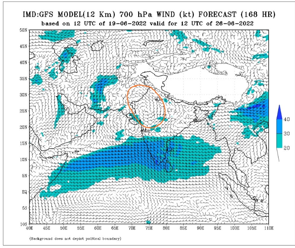 Possibility of Monsoon onset over more parts of Saurashtra and Gujarat during the forecast period. Possibility of scattered pre-monsoon activity for areas that are not covered by monsoon including Kutch during the forecast period.