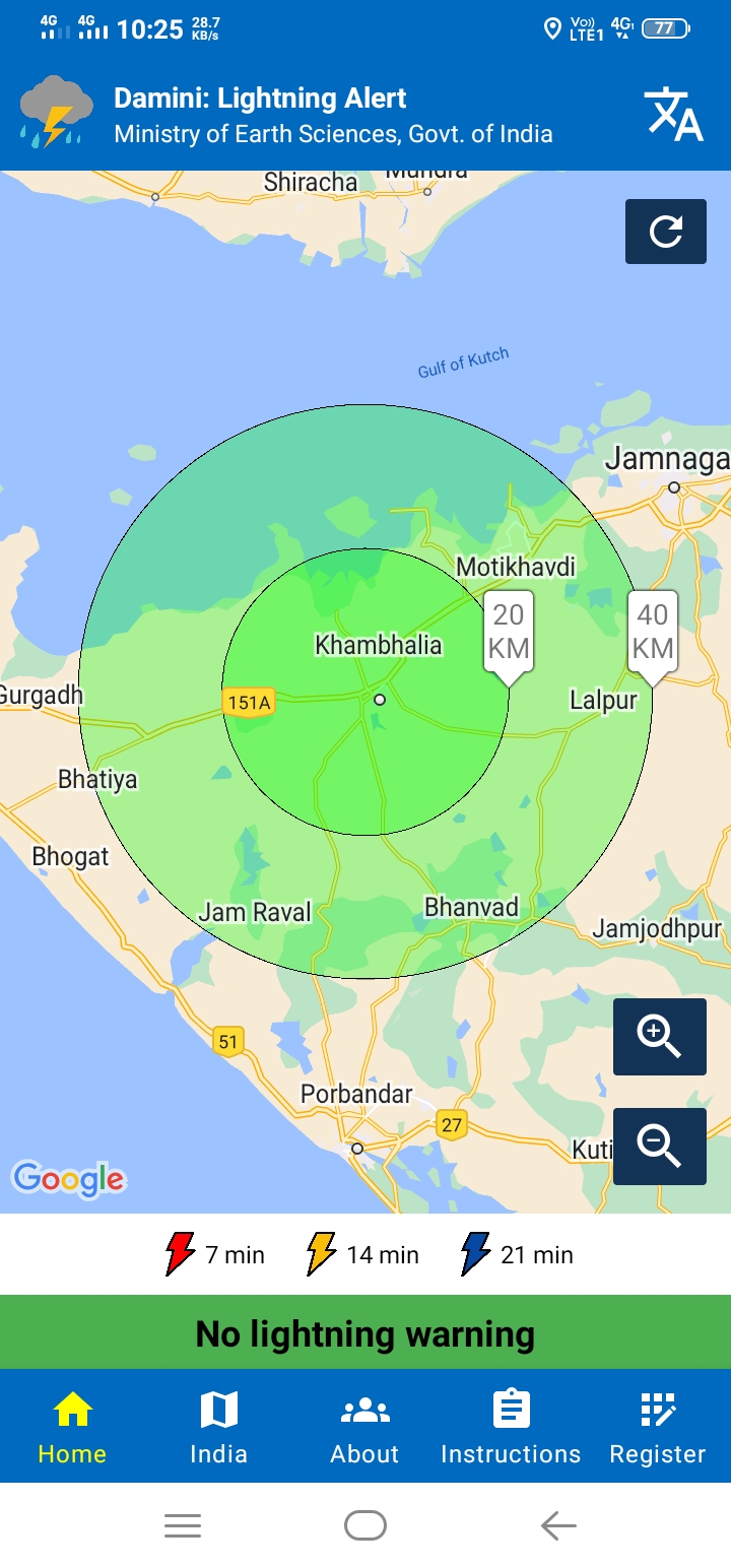 રાઈટ મારા મોબાઈલમાં પણ આ એપ છે 40km ની અંદર ગાજવીજ હોય તો એલર્ટ કરે છે