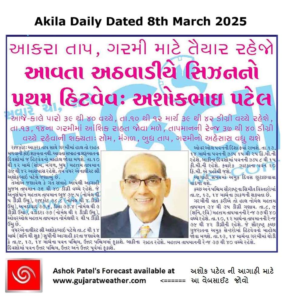 આગાહી: સૌરાષ્ટ્ર, ગુજરાત અને કચ્છ 8 થી 14 માર્ચ 2025