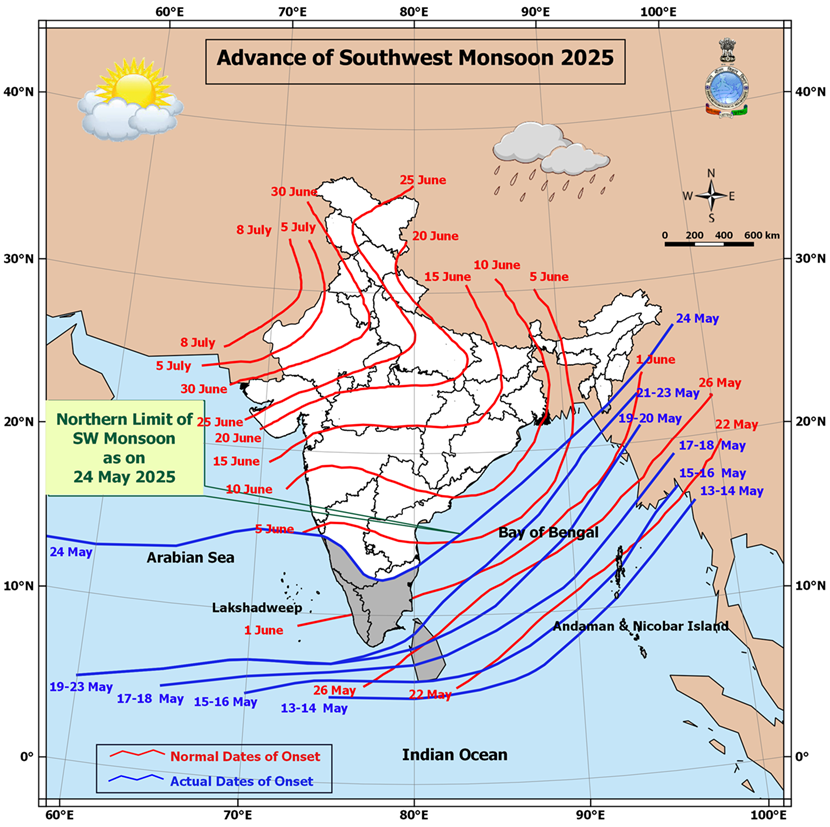 With this, the Southwest Monsoon has officially set in over Kerala today, 24th May 2025, which is ahead of its normal onset date of 1st June.