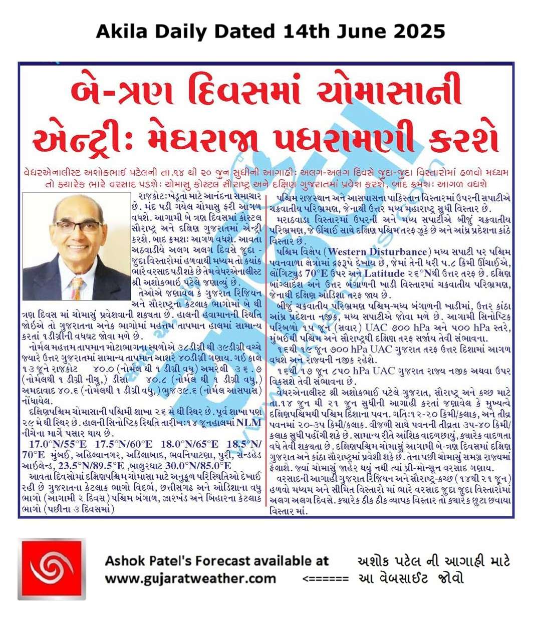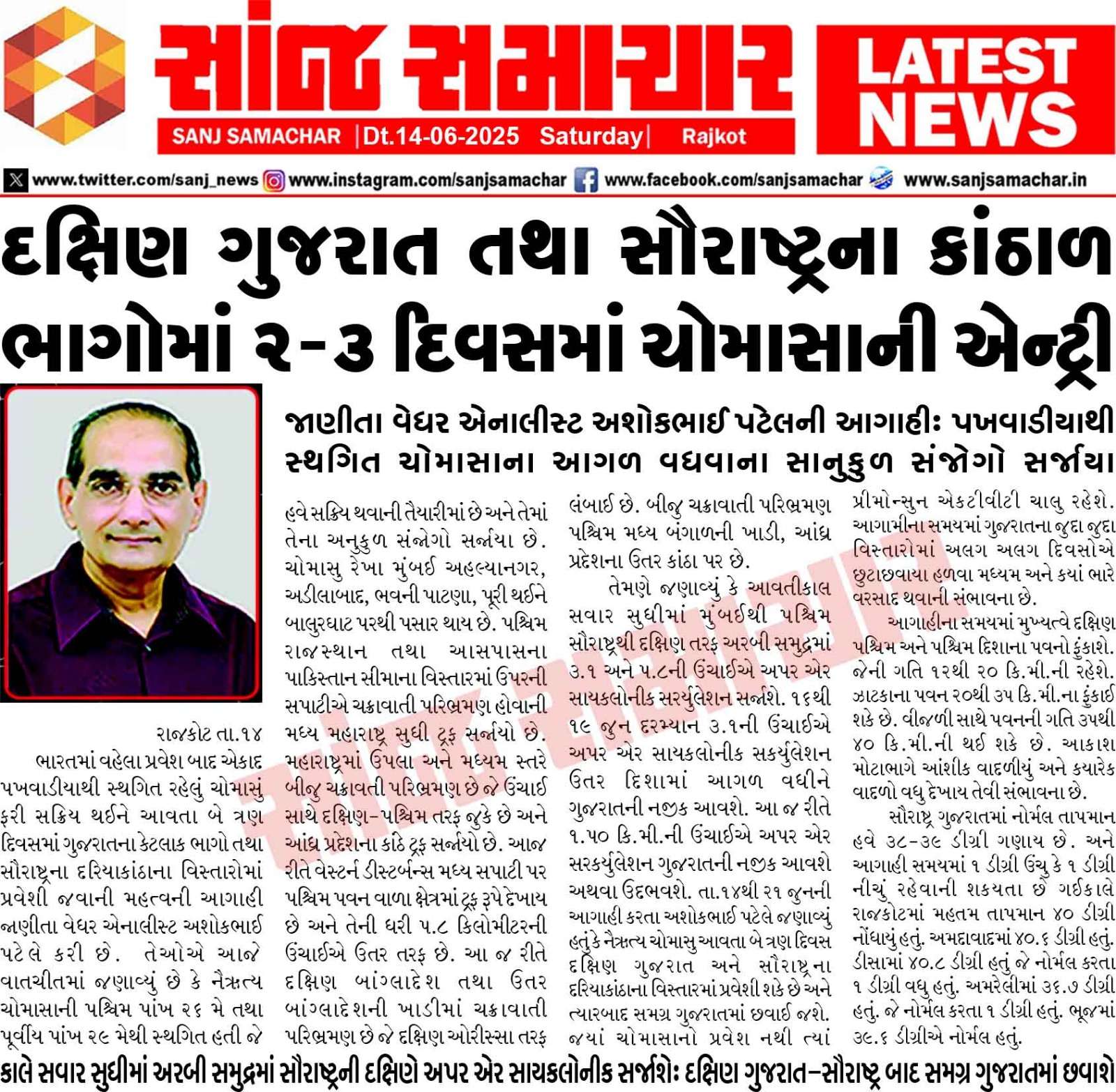 Forecast In Sanj Samachar Daily Dated 14th June 2025