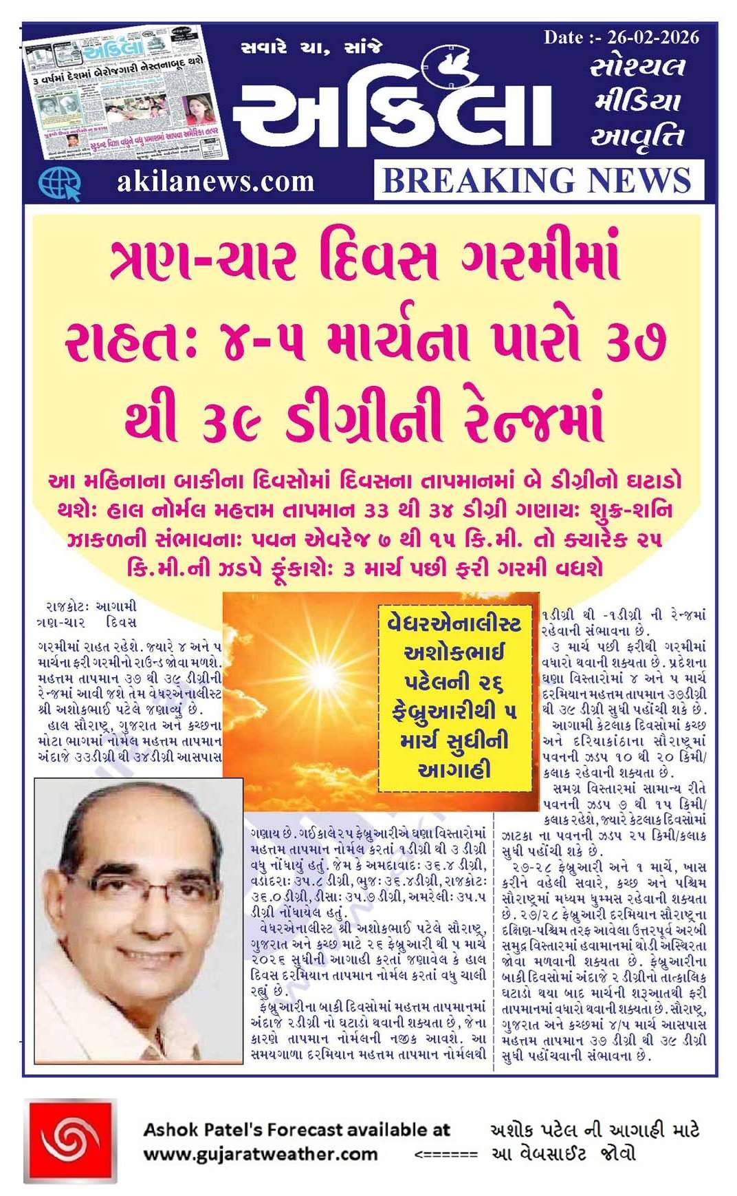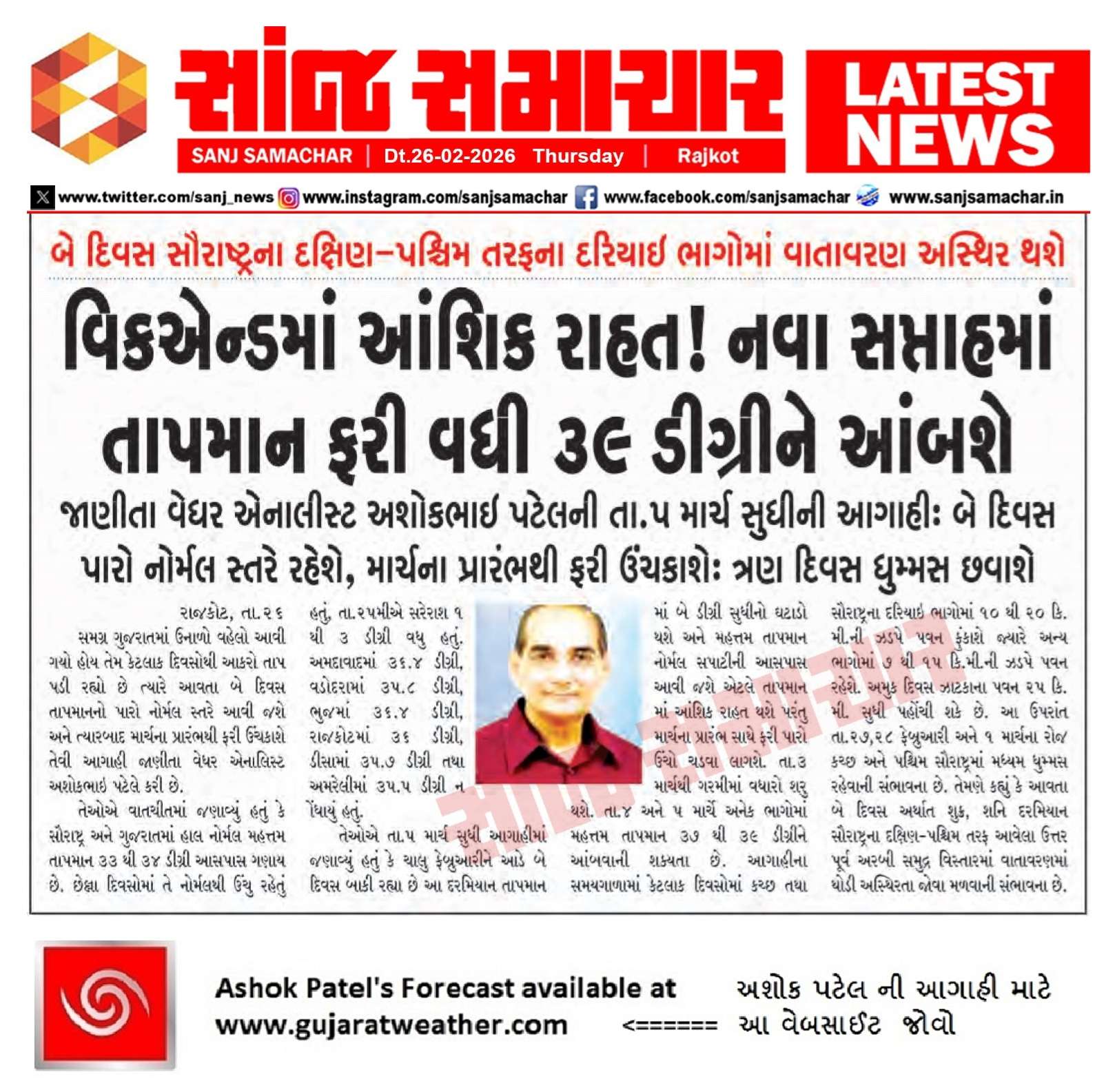 Forecast In Sanj Samachar Daily Dated 26th February 2026