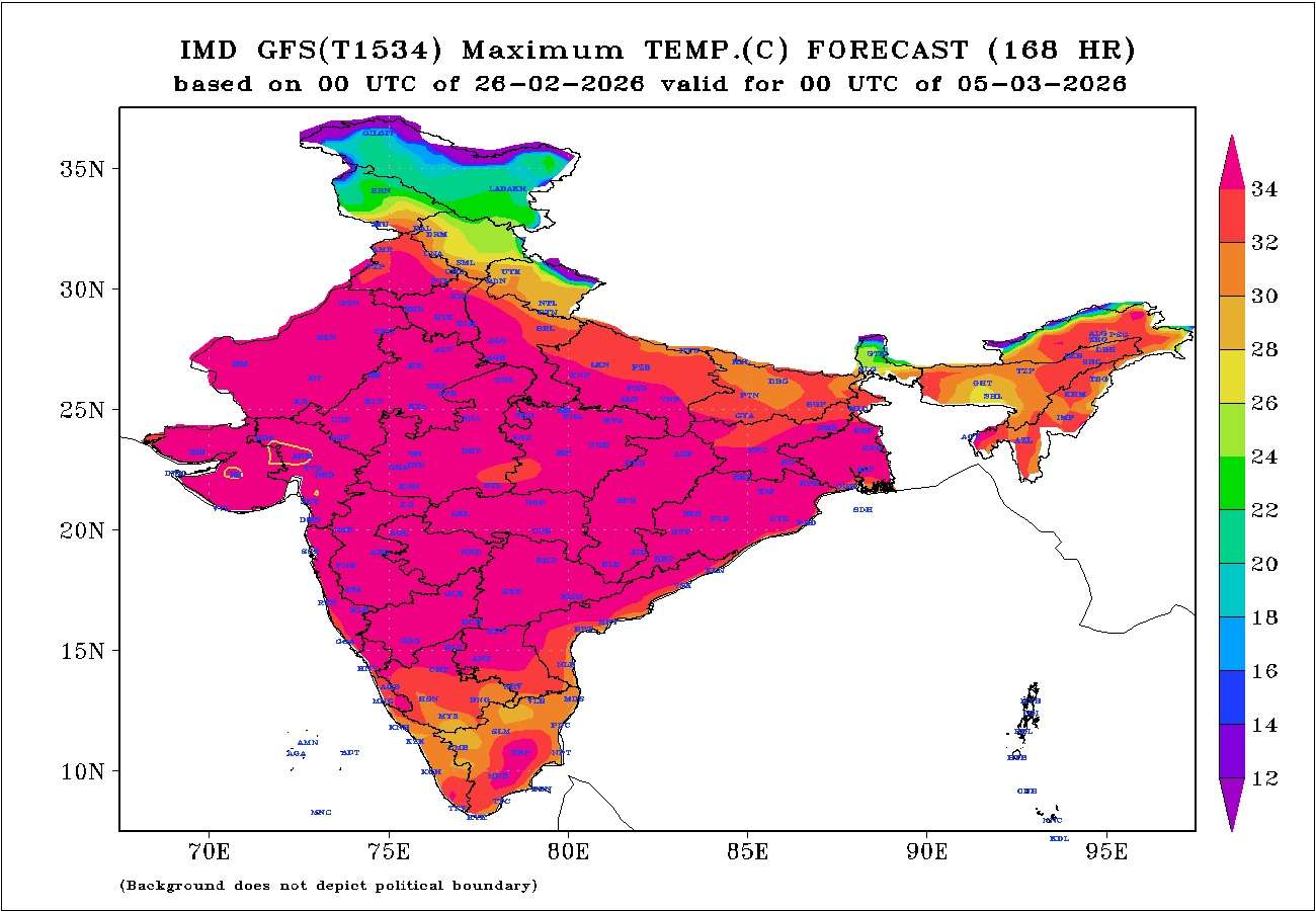 From 3rd March onward, another warming trend is expected to set in. Maximum temperatures could rise to 37°C to 39°C during 4th and 5th March over several parts of the region.