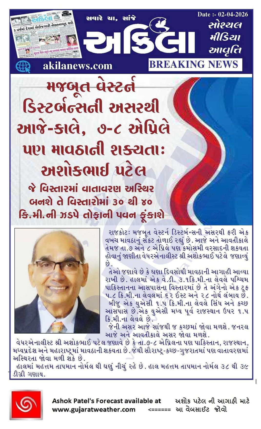 Saurashtra, Gujarat & Kutch Unseasonal Rain Possibility 2-4th April – Second Spell Around 7th/8th April 2026