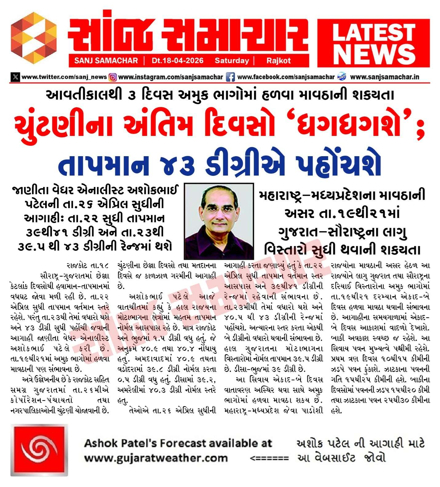 Forecast In Sanj Samachar Daily Dated 18th April 2026