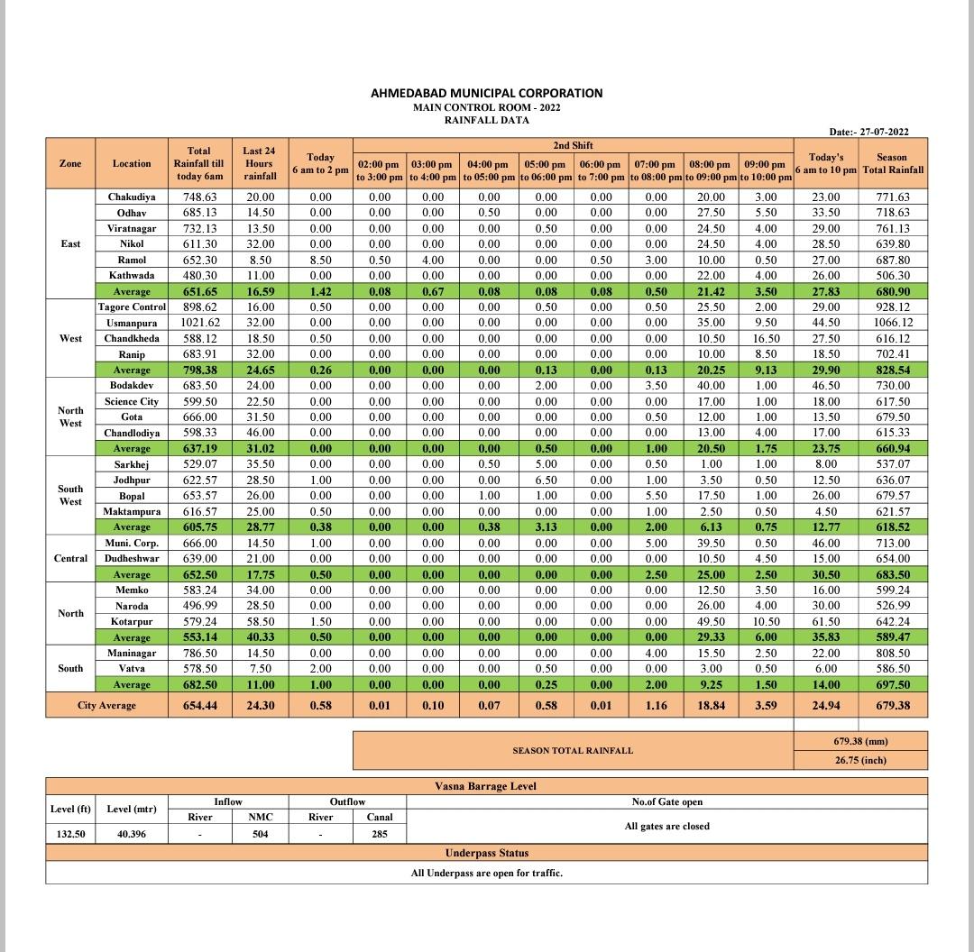 22 જુલાઈ 2022 સુધીના વરસાદ ની સ્થિતિ: