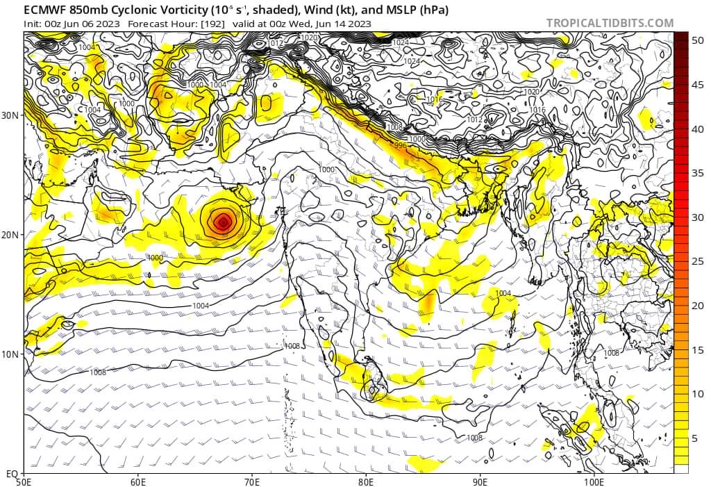 Lastest ECMWF model run.. Still very early to predict just wait and watch situation.. Example phet cyclone which take sharp turn near oman and laandfall near india Pakistan border