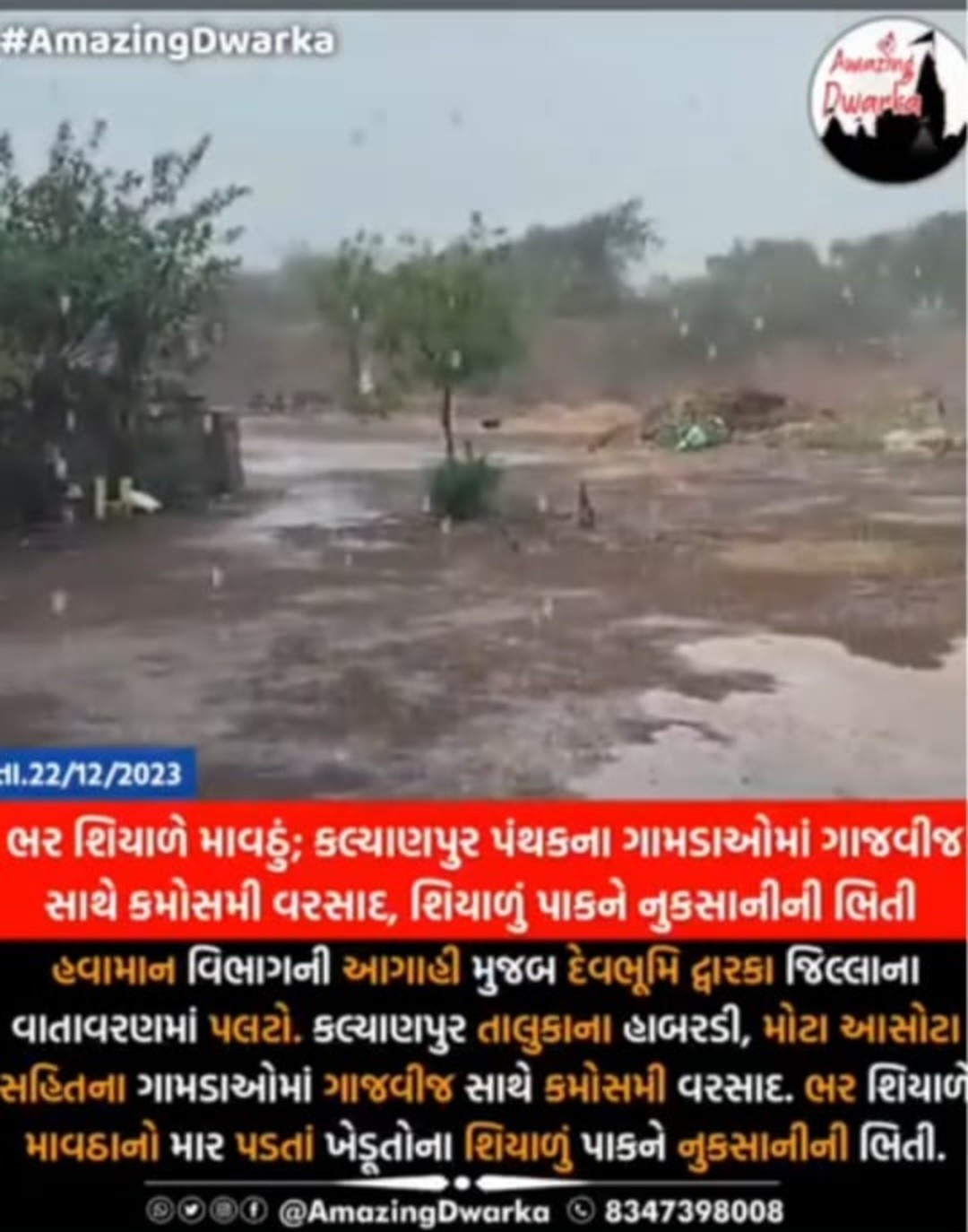 સર આજે હું દ્વારકા ગયો ત્યા ભાણવડ આને દ્વારકા વચ્ચે અમુક જગ્યાએ સારા ઝાપટાં હતા