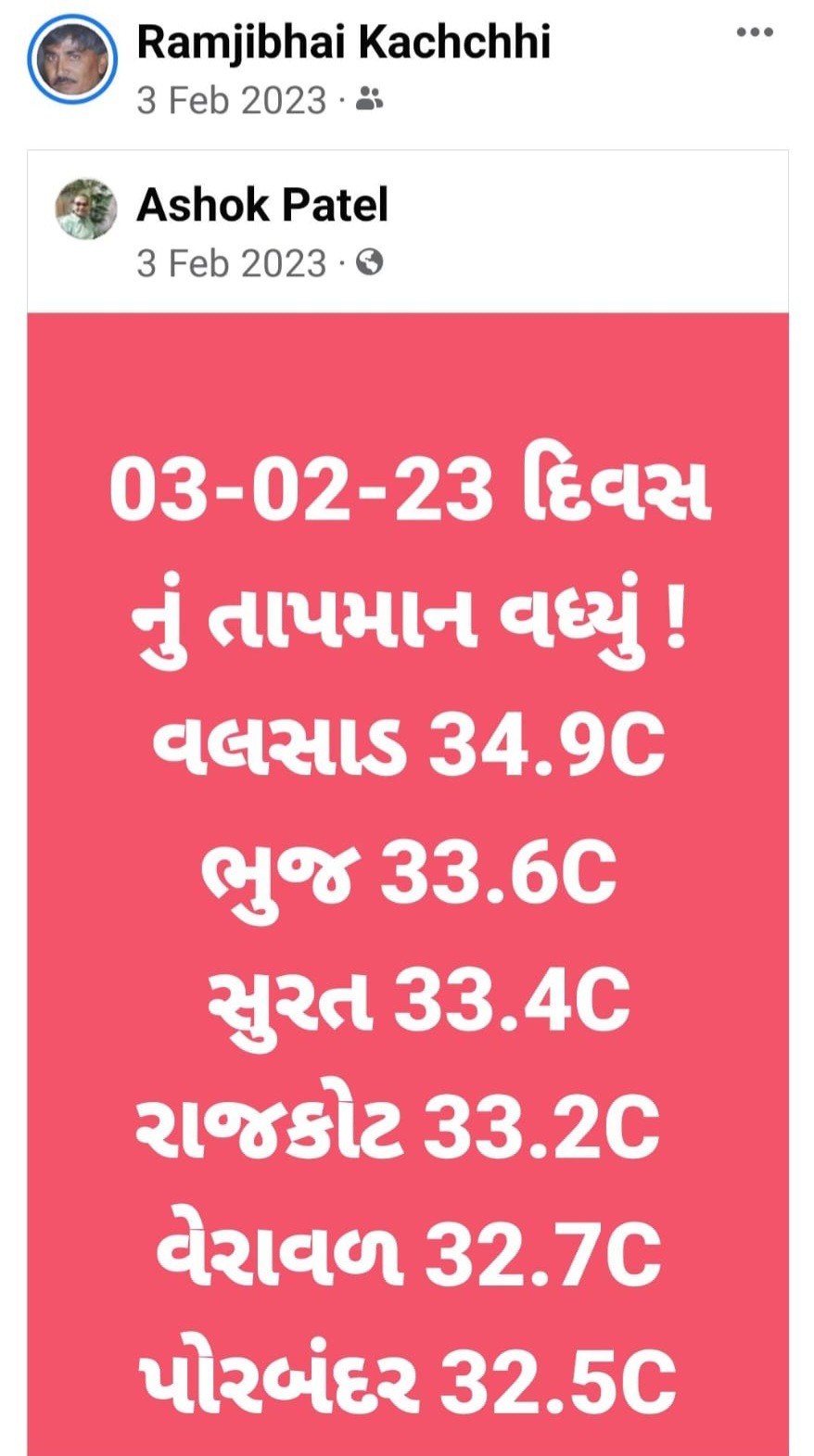 Have aa varshe cold wave bhuli javano. Thoda diwas pachi to taapmaan vadhva mandse ane gharmi vadhva mandse lagbhag 10th Feb pachi.