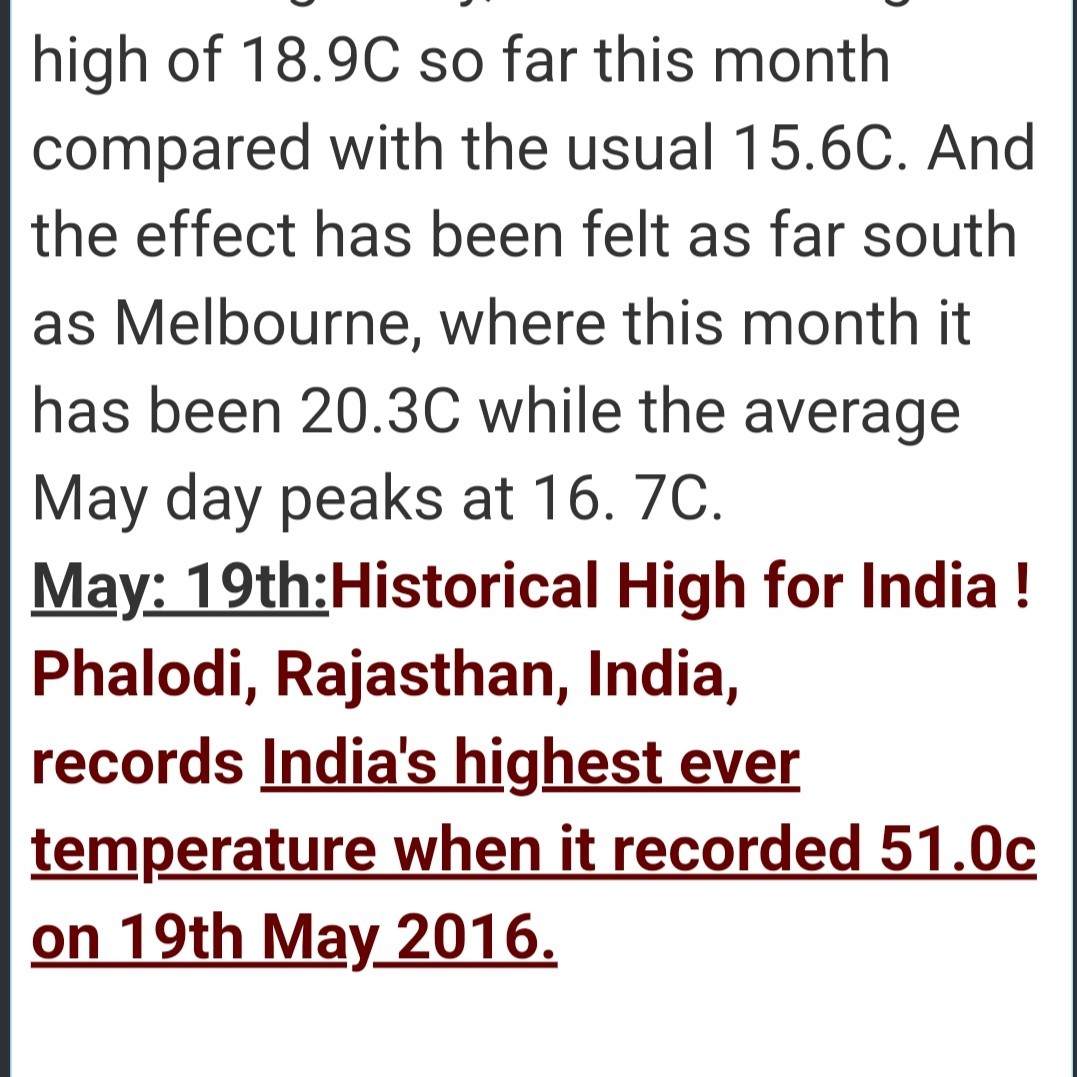 On May 19, 2016, Phalodi in Rajasthan recorded the highest temperature of 51°C in Rajasthan.