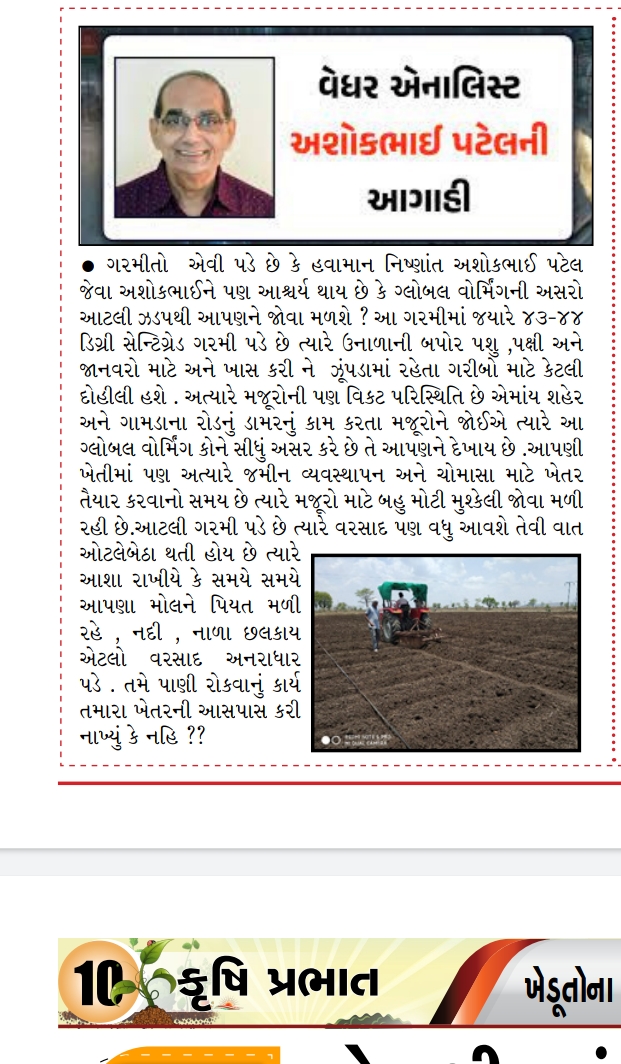 Good morning sir amdavad ma garmi kyare ochi thase vadad kyare aavse 1 week thi aa garmi picho nathi chodti Bichara janvaro pakshio pan mare 6