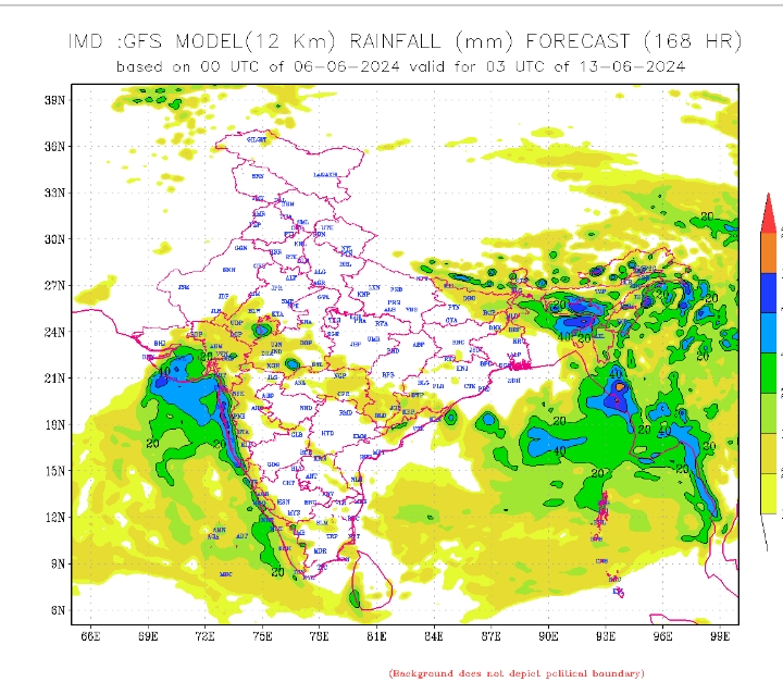 તારીખ 30 મે 2024 ના દક્ષિણ પશ્ચિમ ચોમાસુ કેરાલા અને માહે માં બેઠું અને નોર્થ ઇસ્ટ રાજ્યો ના મોટા ભાગો માં આગળ વધ્યું જેમાં સમગ્ર નાગાલેન્ડ, મણિપુર, મિઝોરમ, અરુણાચલ પ્રદેશ અને ત્રિપુરા, મેઘાલયને આસામ ના મોટા ભાગો માં