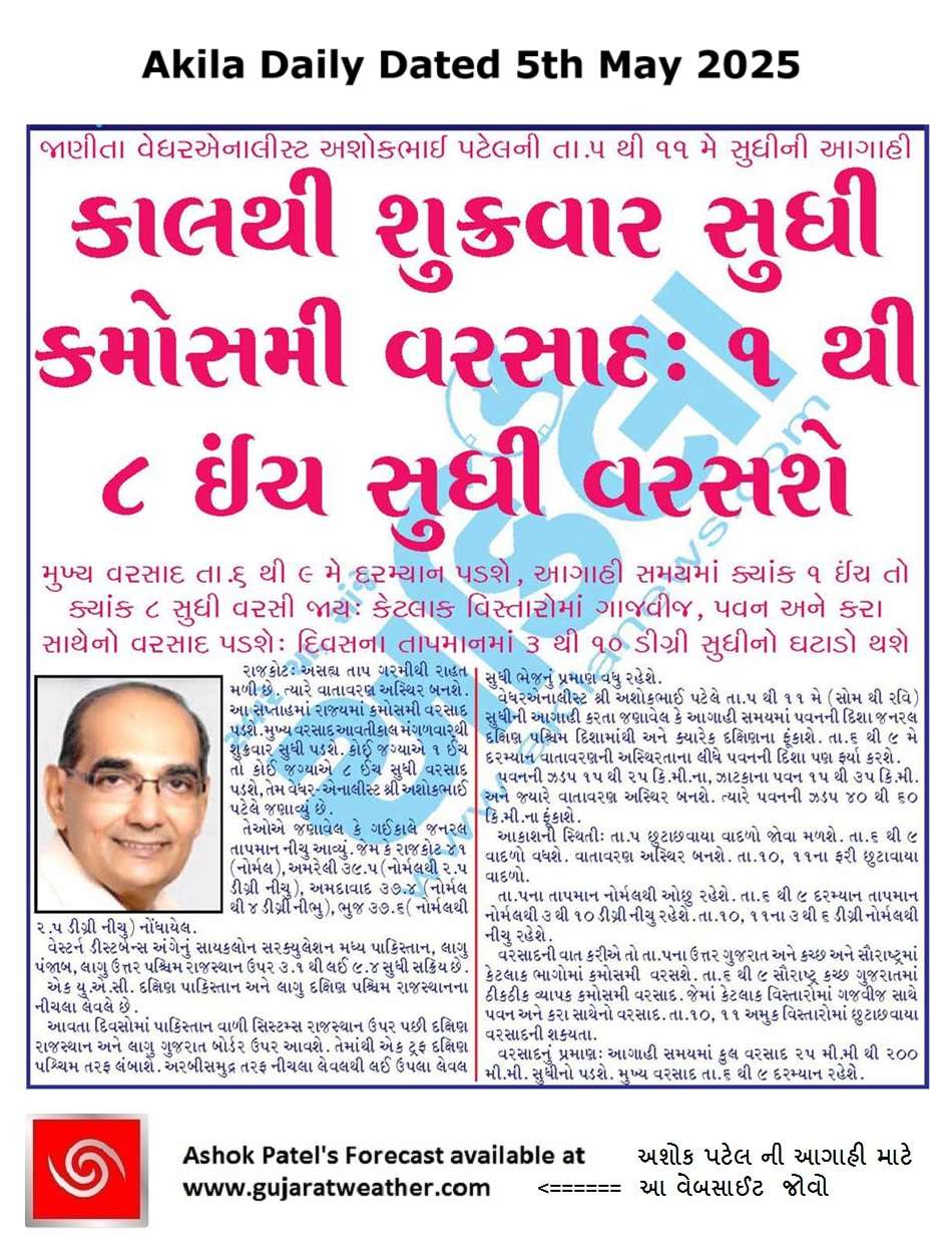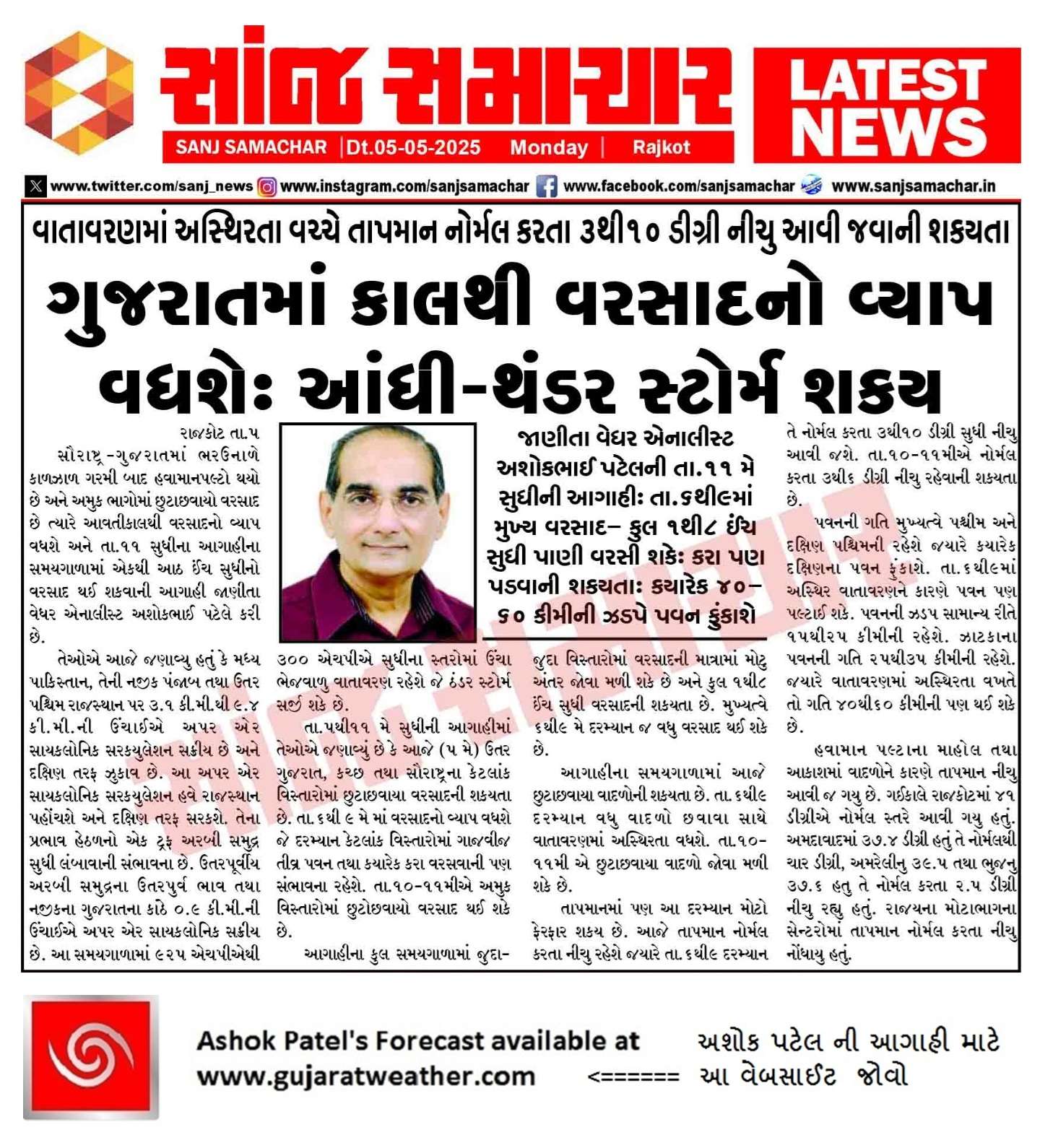 અકિલા અને સાંજ સમાચાર માં અશોકભાઈ પટેલ ની જ આગાહી હોય છે. અને સાહેબ ના નામ ની આગાહી હોય તેમાં સનસનાટી ન હોય.