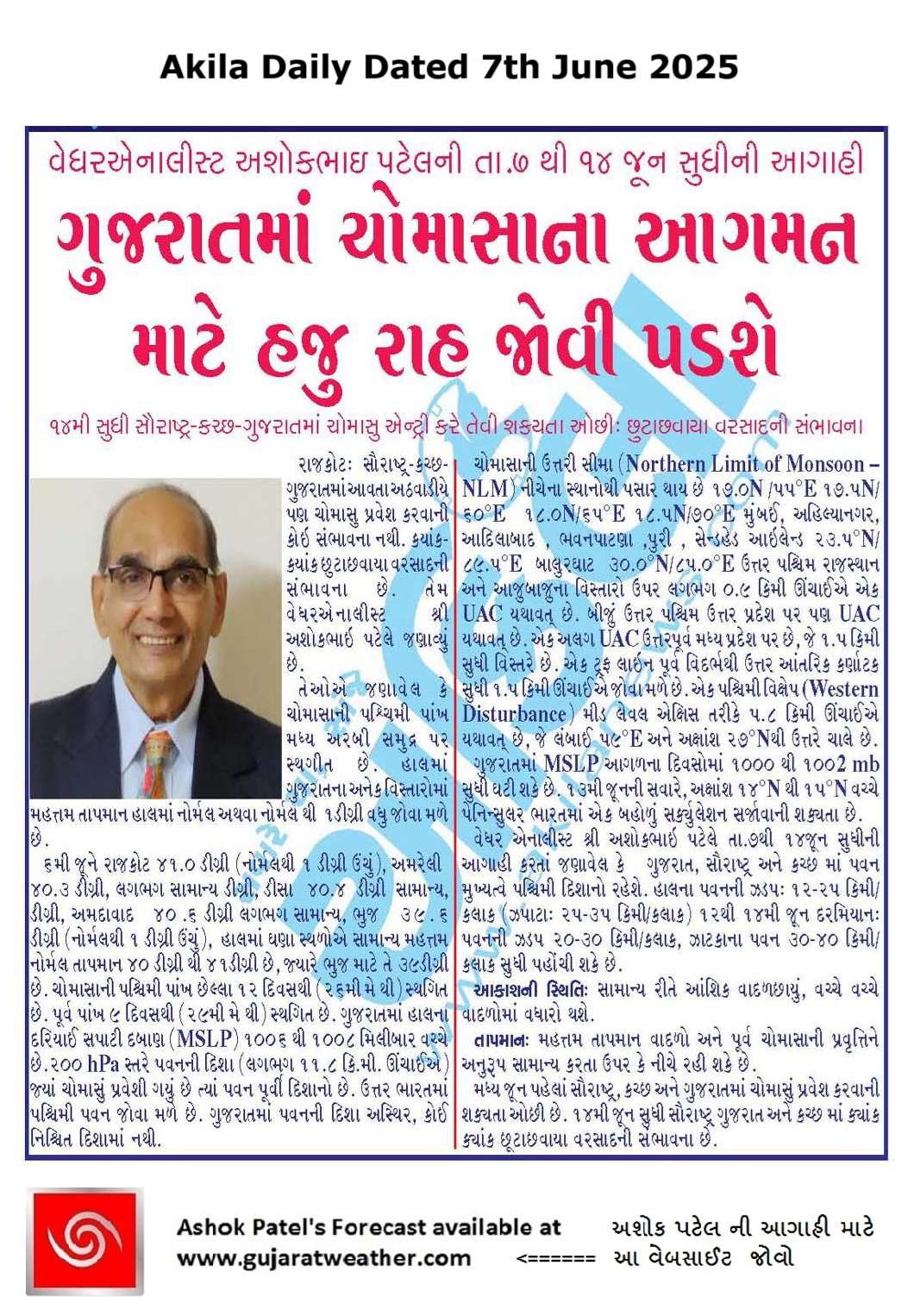 BAAKI Forecast In Sanj Samachar Daily Dated 7th June 2025