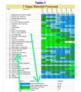 અપેક્ષિત હવામાન પરિબળો :