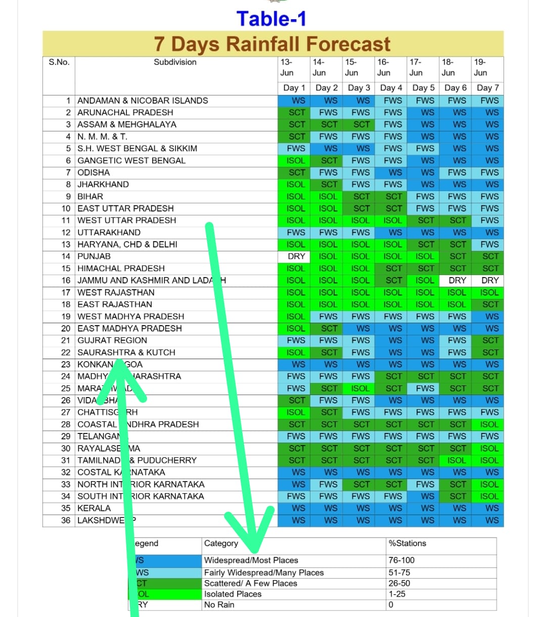 - A broad Upper Air Cyclonic Circulation is likely over Peninsular India (Lat. 14°N–15°N) around 13th June morning.