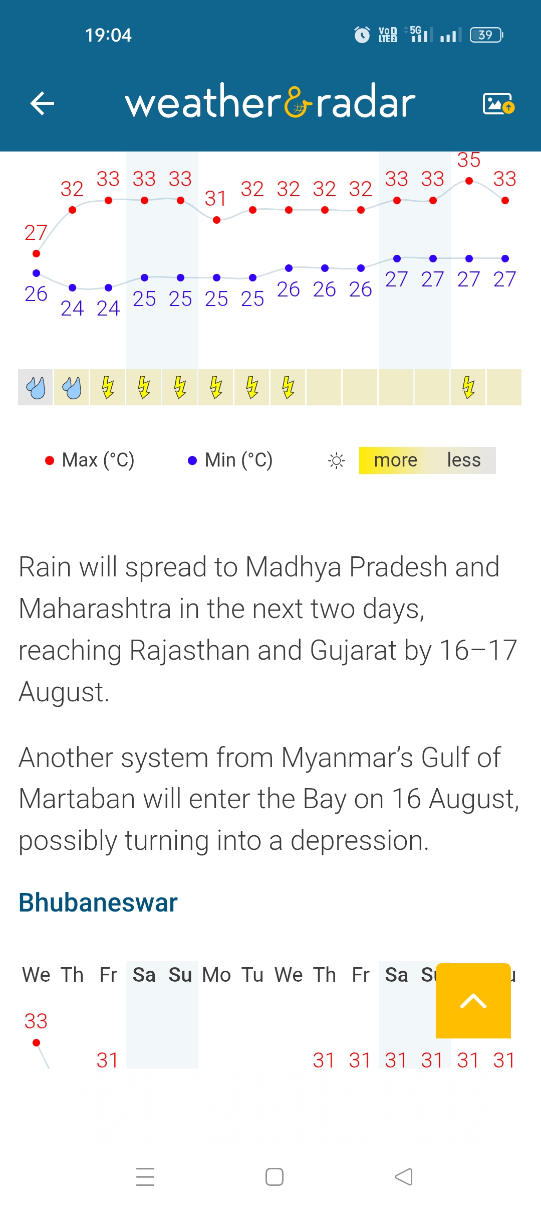 Next akhu week varsad thi bharelu hase have pakku Thai gayu fairly widespread rainfall expected mainly from 17th to 21st Aug.