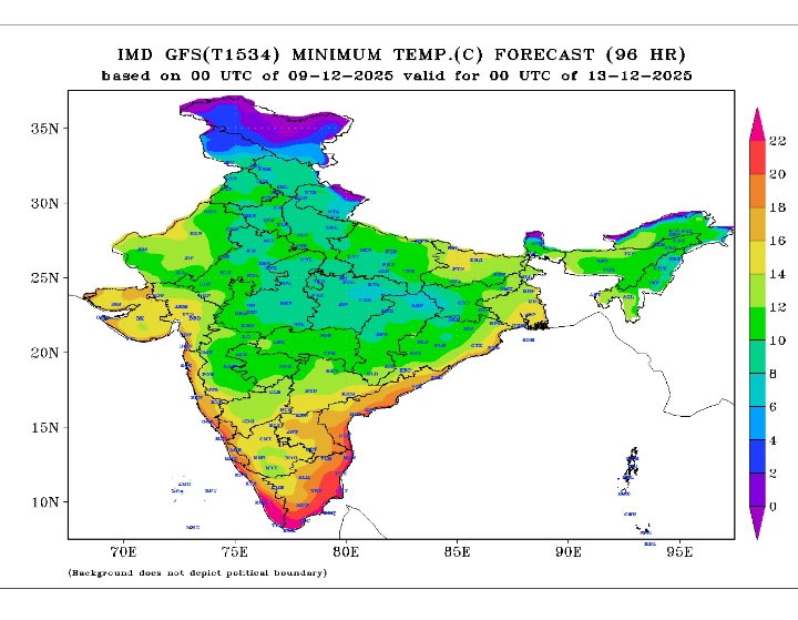 - Minimum temperatures are expected to gradually decrease by about 2°C to 4°C during 6th to 13th December, pushing the region into below-normal temperature conditions.