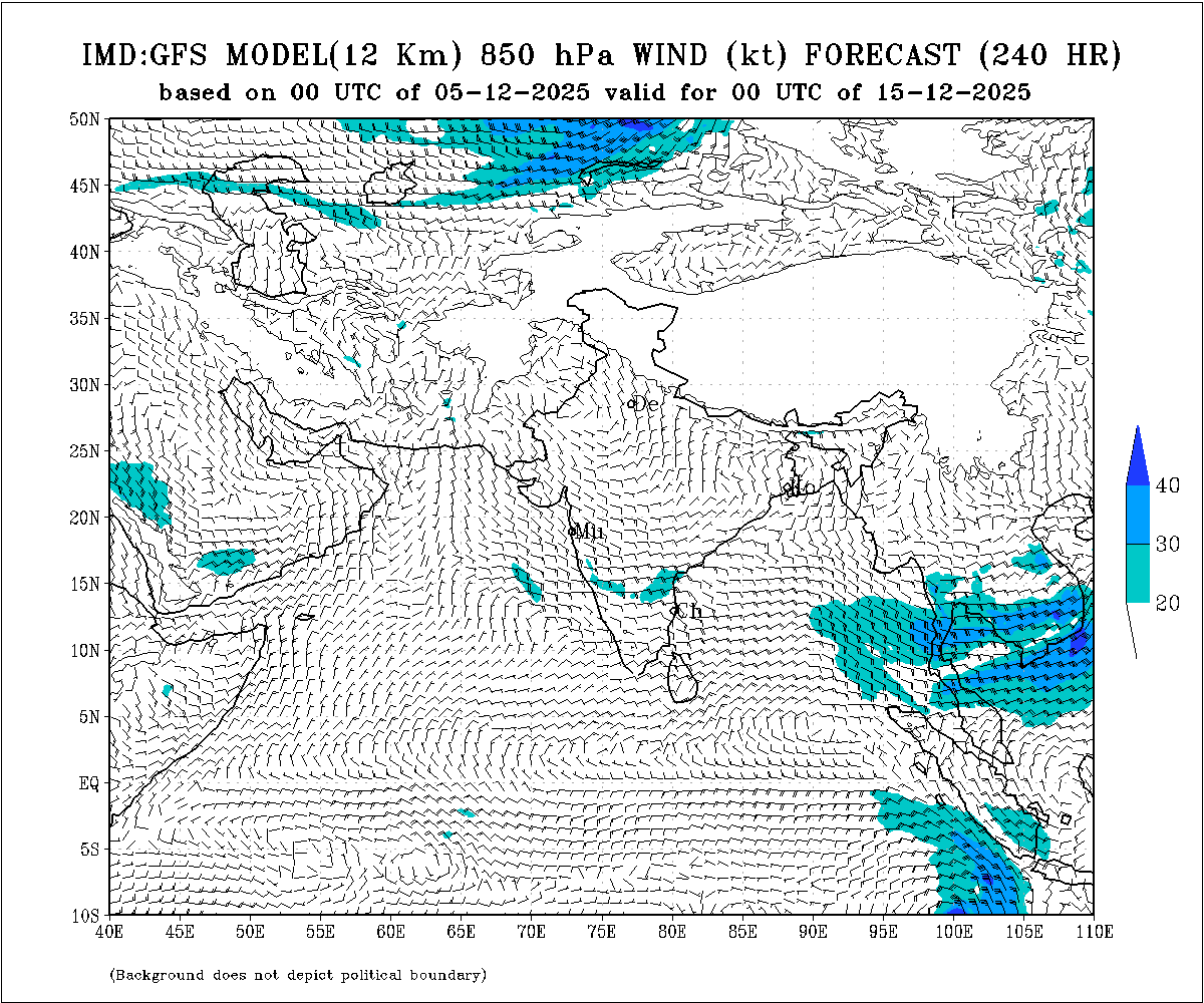 નોંધ: ચાર્ટ માં એક કોઠો આપેલ છે જેમાં વિવિદ્ધ કલર પવનો ની સ્પીડ સી લેવલ થી 1.5 km ની ઉંચાઇએ નોટ માં દર્શાવે છે. 1 નોટ = 1.852 કિમી/કલાક