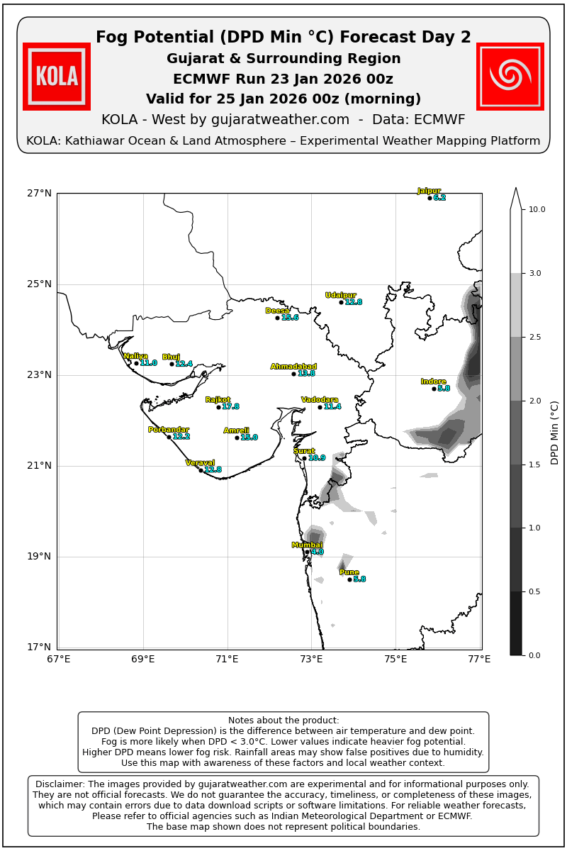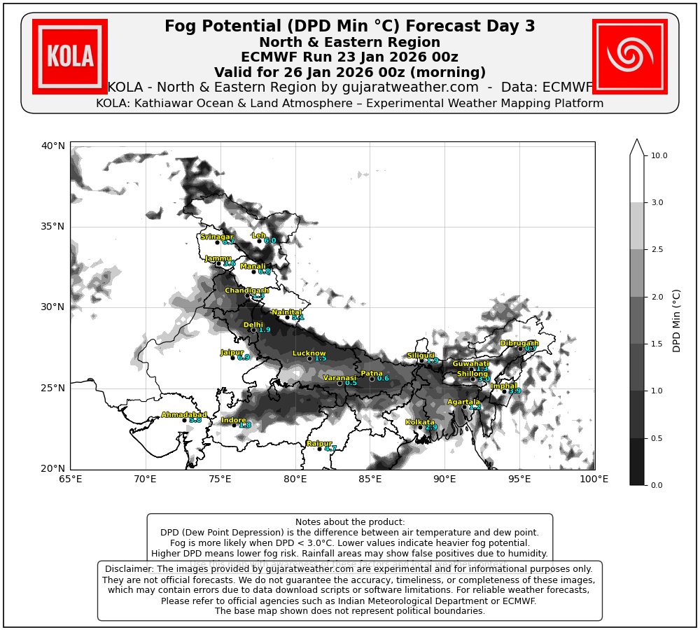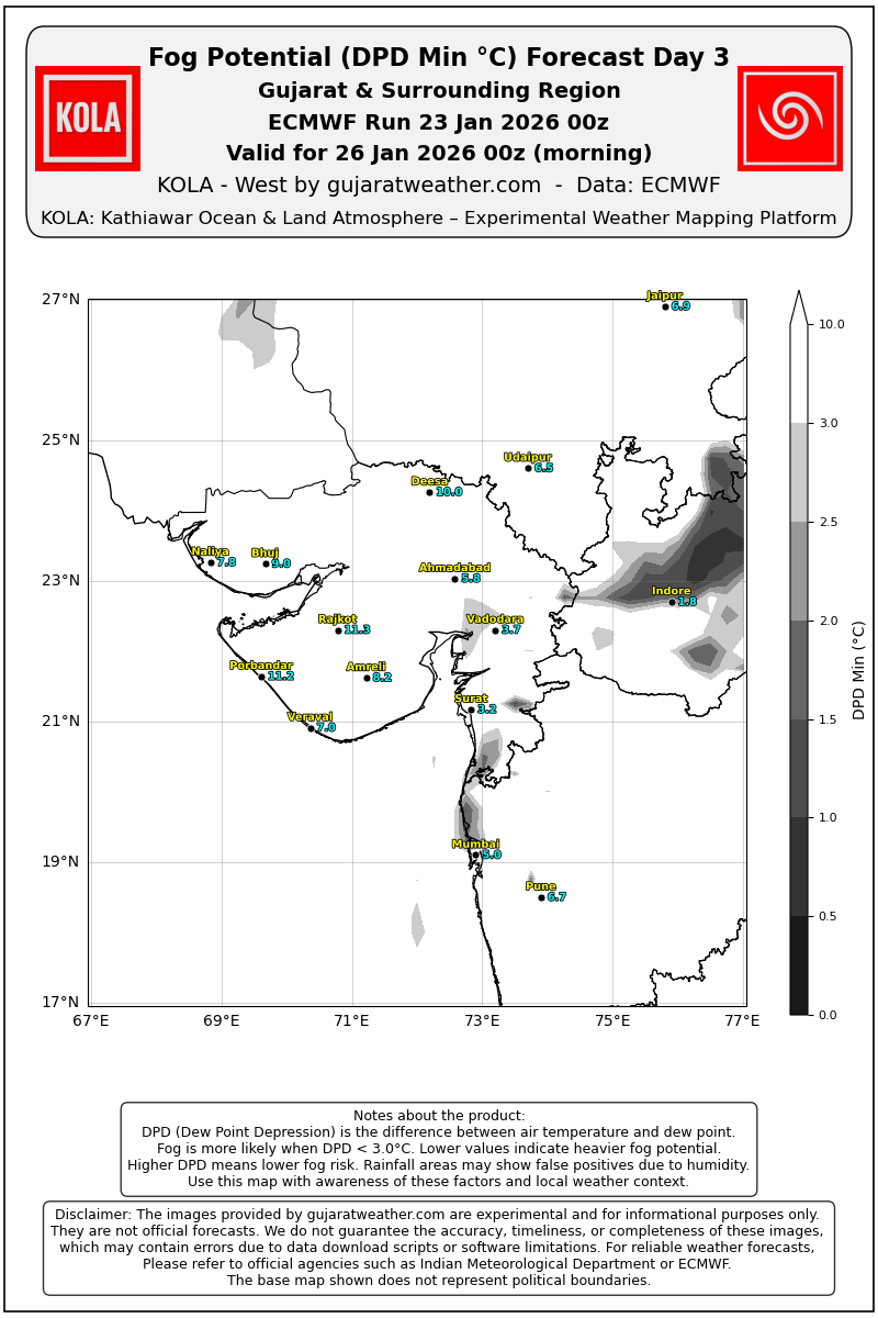 DPD < 3°C: ધુમ્મસની સંભાવના (DPD જેટલું ઓછું, જોખમ વધુ).