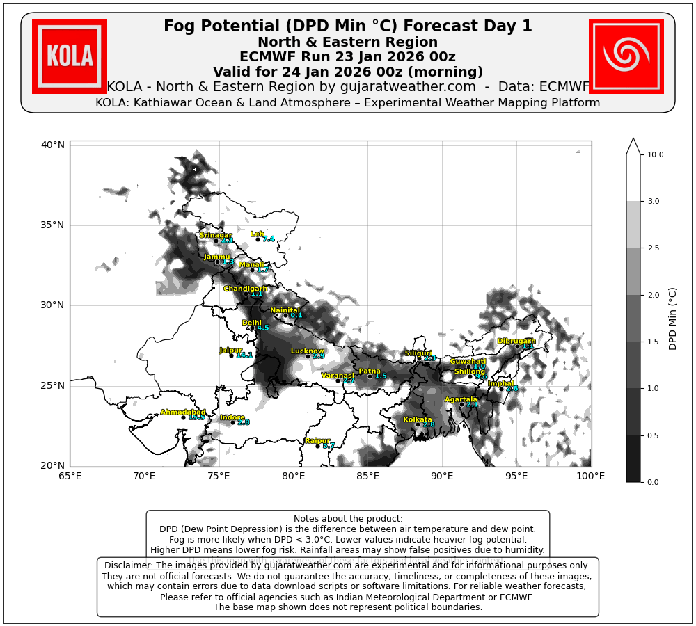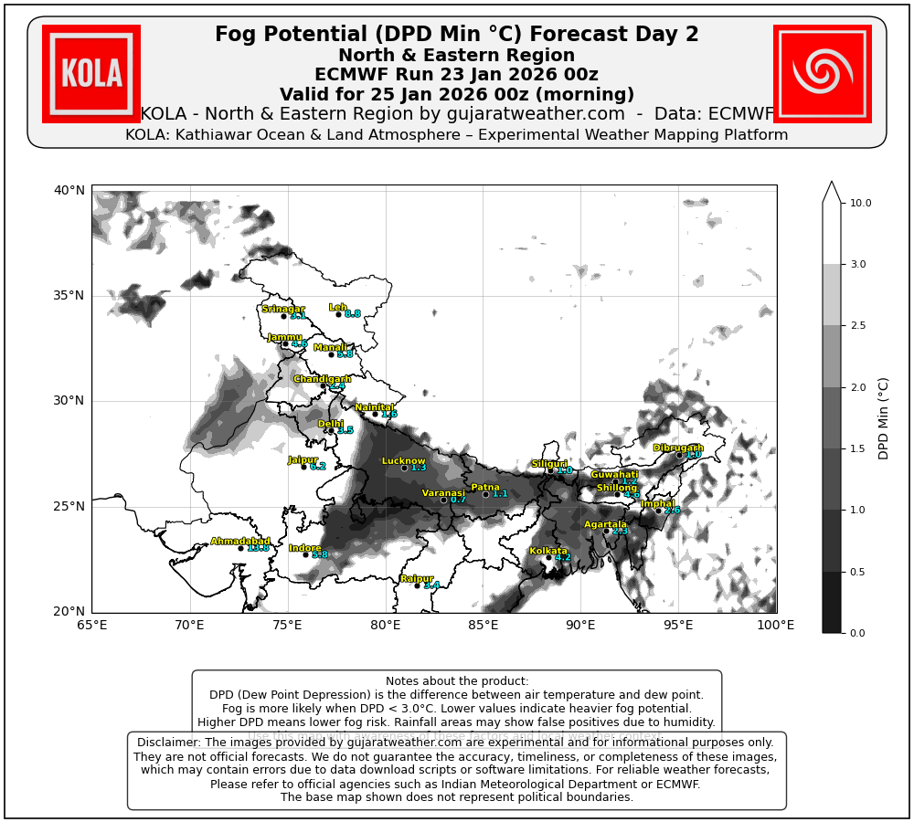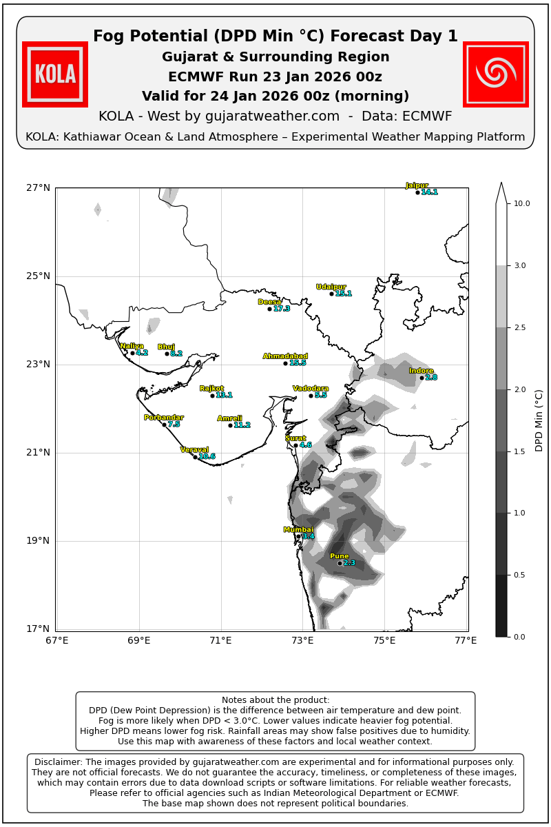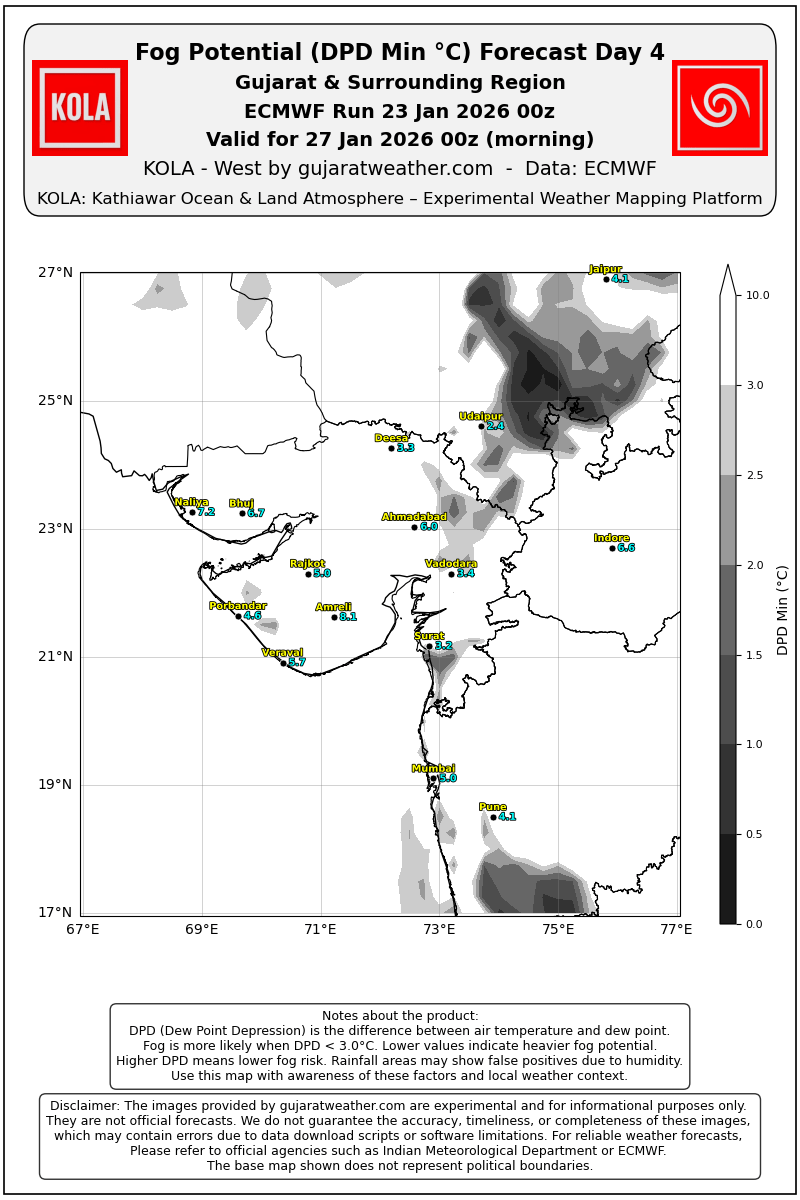 DPD < 3°C: ધુમ્મસની સંભાવના (DPD જેટલું ઓછું, જોખમ વધુ).